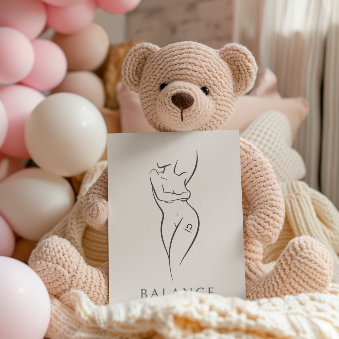 • Design raffiné : une illustration représentant une femme gracieuse et élégante, tatouée du signe de la Balance sur la cuisse, symbolisant l’équilibre, la justice et la beauté.