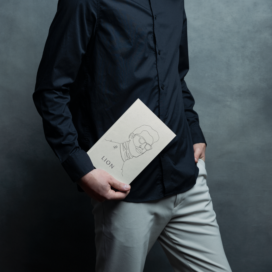 Découvrez notre carnet "Homme Lion" – une œuvre audacieuse et majestueuse, célébrant la confiance et la générosité du signe astrologique Lion. Ce carnet unique présente une illustration artistique d'un homme portant un t-shirt orné du signe Lion, capturant la force et la noblesse qui caractérisent ce signe.
