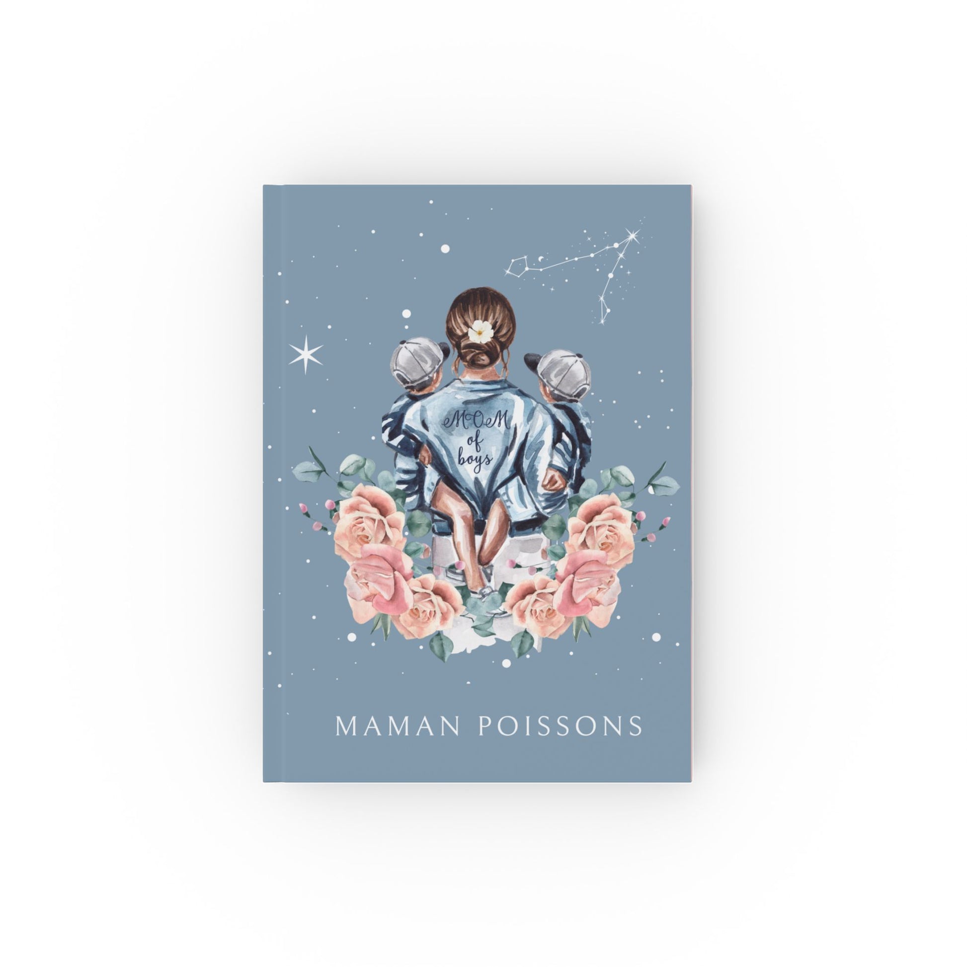 Découvrez notre carnet "Mère Poissons et ses fils" – une œuvre tendre et céleste, célébrant l’amour maternel et la connexion profonde du signe astrologique Poissons. Ce carnet unique présente une illustration artistique d'une mère Poissons portant ses fils dans les bras, sous un ciel étoilé représentant la constellation du Poissons, capturant la douceur et l'intuition qui caractérisent ce signe.