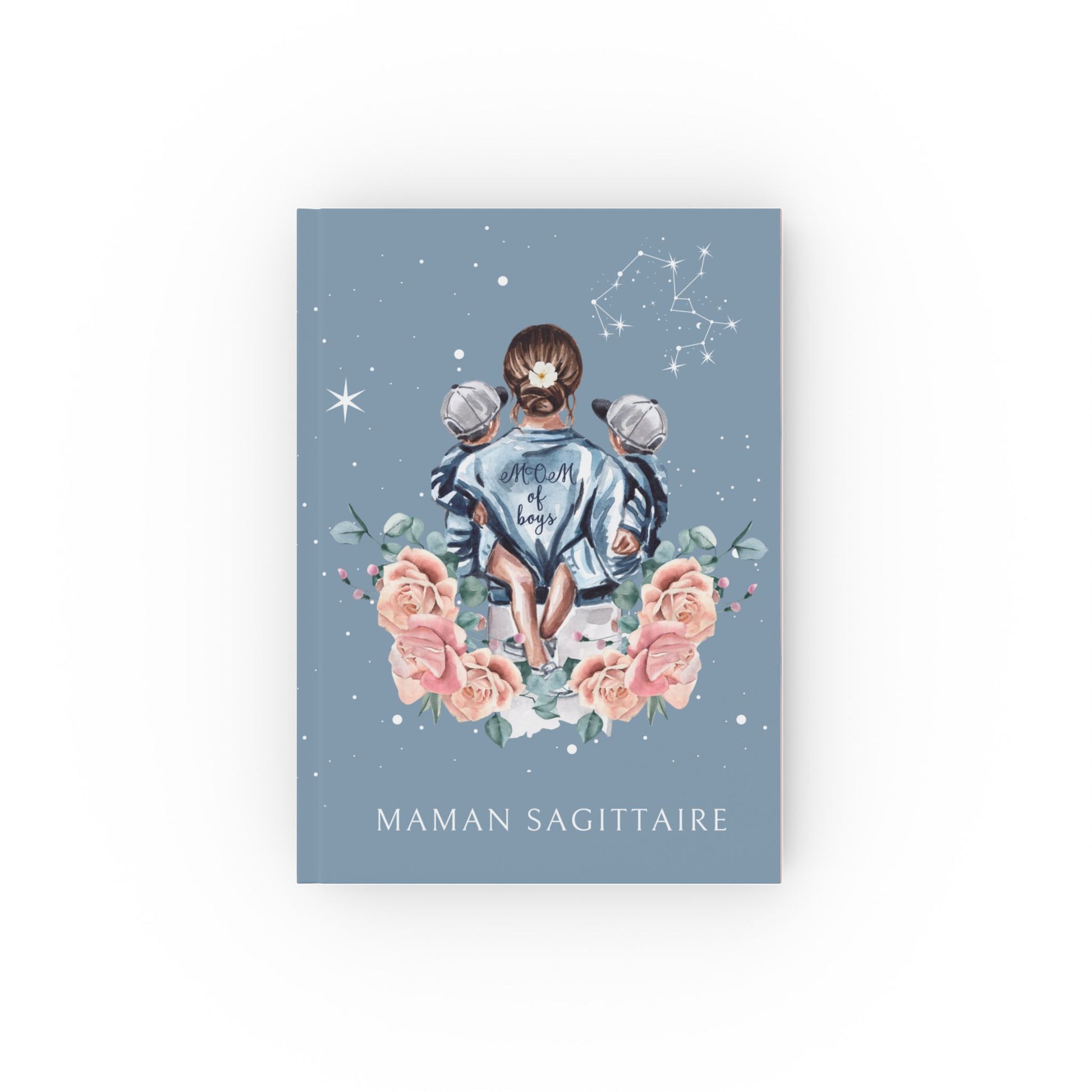 Découvrez notre carnet "Mère Sagittaire et ses fils" – une œuvre vibrante et aventureuse, célébrant l’amour maternel et l’esprit de liberté du signe astrologique Sagittaire. Ce carnet unique présente une illustration artistique d'une mère Sagittaire portant ses fils dans les bras, sous un ciel étoilé représentant la constellation du Sagittaire, capturant l’enthousiasme et l’optimisme qui caractérisent ce signe.