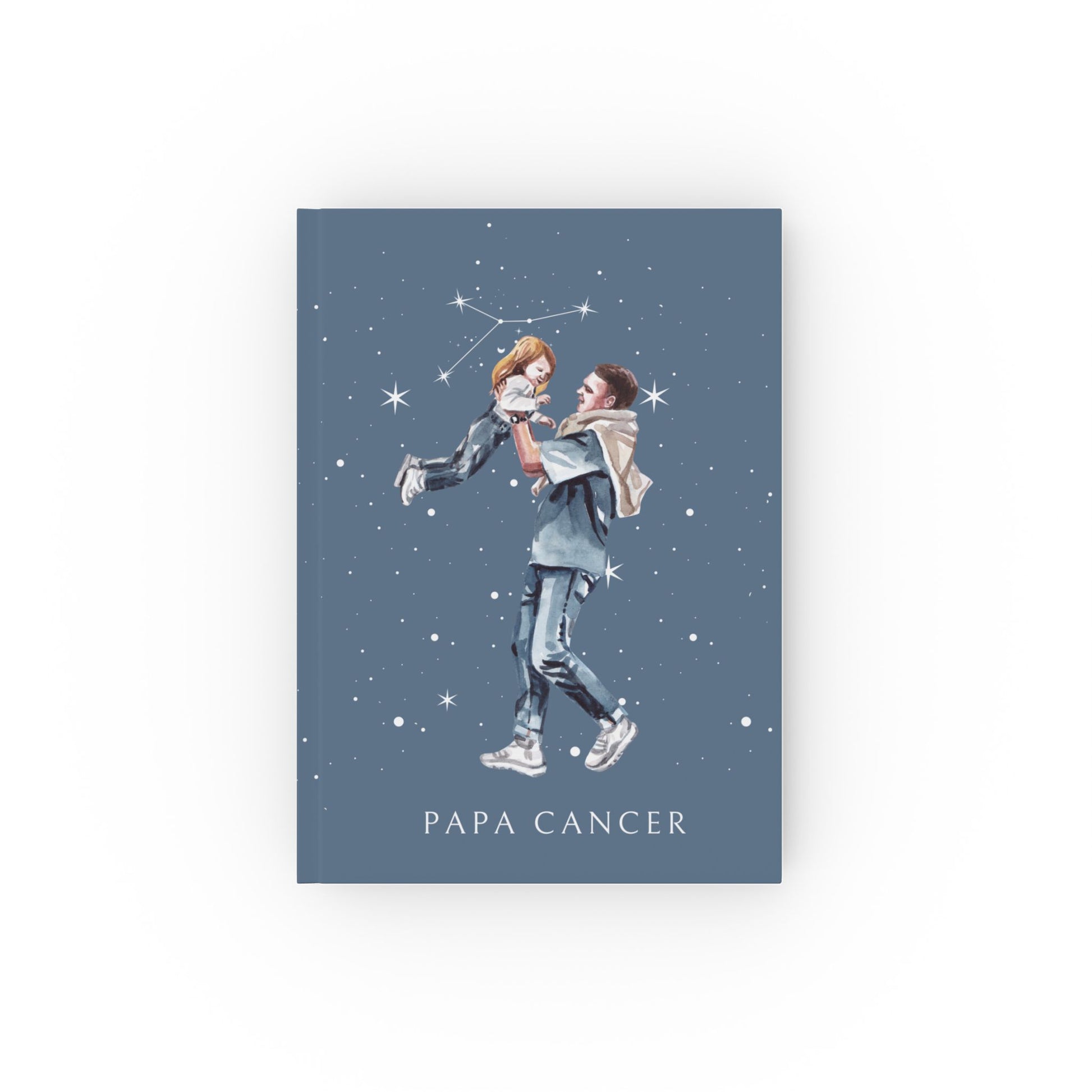 • Design raffiné : une illustration représentant un père aimant et protecteur tenant sa fille, avec en arrière-plan la constellation du Cancer, symbolisant l’intuition, la tendresse et un amour profond et protecteur.