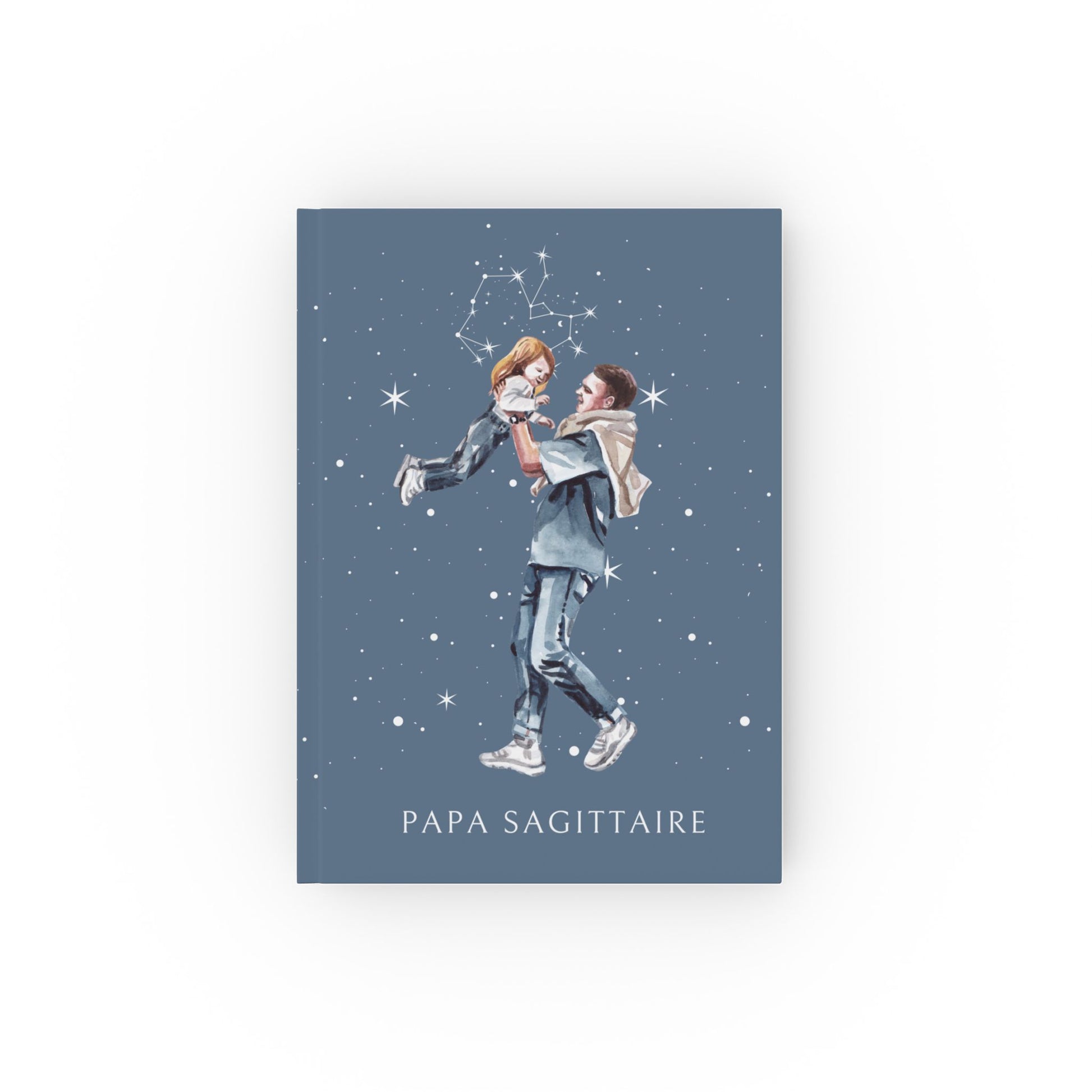 Découvrez notre carnet « Père Sagittaire et sa fille » – une œuvre libre et pleine d’aventure, célébrant l’amour paternel et l’optimisme du signe astrologique Sagittaire. Ce carnet unique présente une illustration artistique d’un père Sagittaire tenant sa fille sous un ciel représentant la constellation du Sagittaire, capturant la curiosité et la soif de découverte qui caractérisent ce signe.