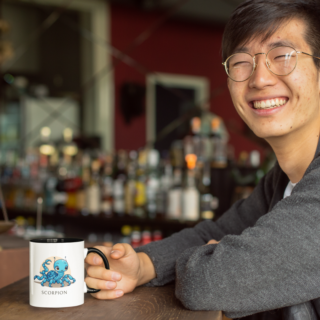 Ce magnifique mug en céramique est parfait pour toutes les occasions : café matinal, chocolat chaud ou toute autre boisson chaude. Blanc, avec un intérieur et une poignée de la couleur de votre choix, il est idéal pour les petits garçons Scorpion ou les hommes qui ont gardé leur âme d'enfant.
