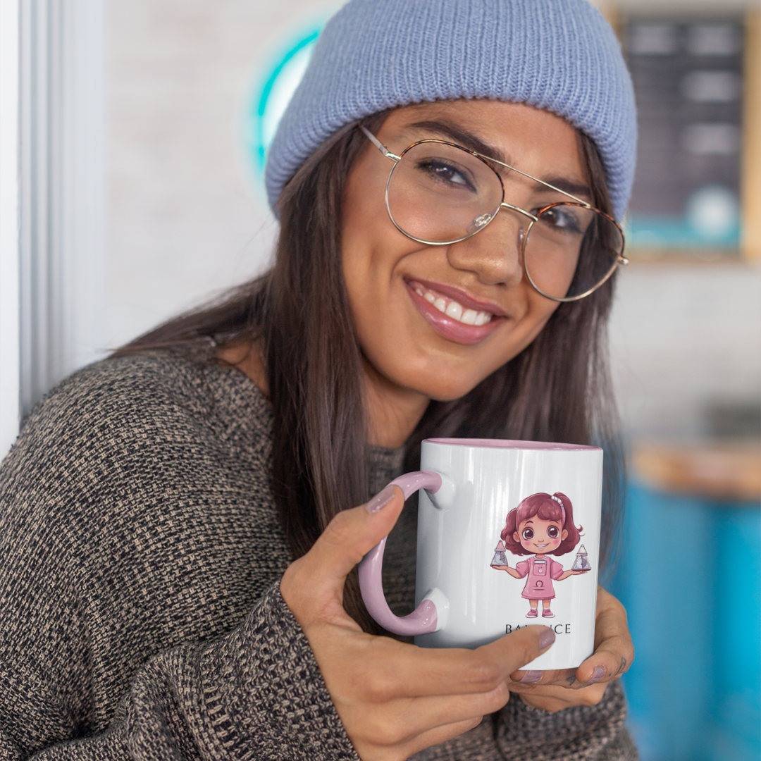 Ce magnifique mug en céramique est parfait pour toutes les occasions : café matinal, chocolat chaud ou toute autre boisson chaude. Blanc, avec un intérieur et une poignée de la couleur de votre choix, il est idéal pour les petites filles Balance ou les femmes qui ont gardé leur âme d'enfant.