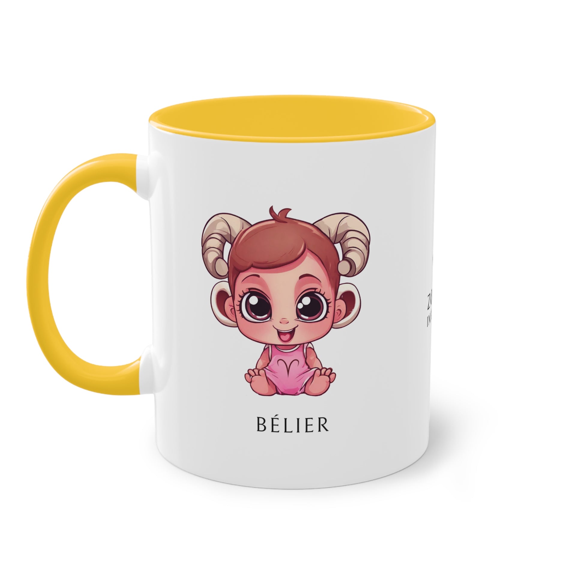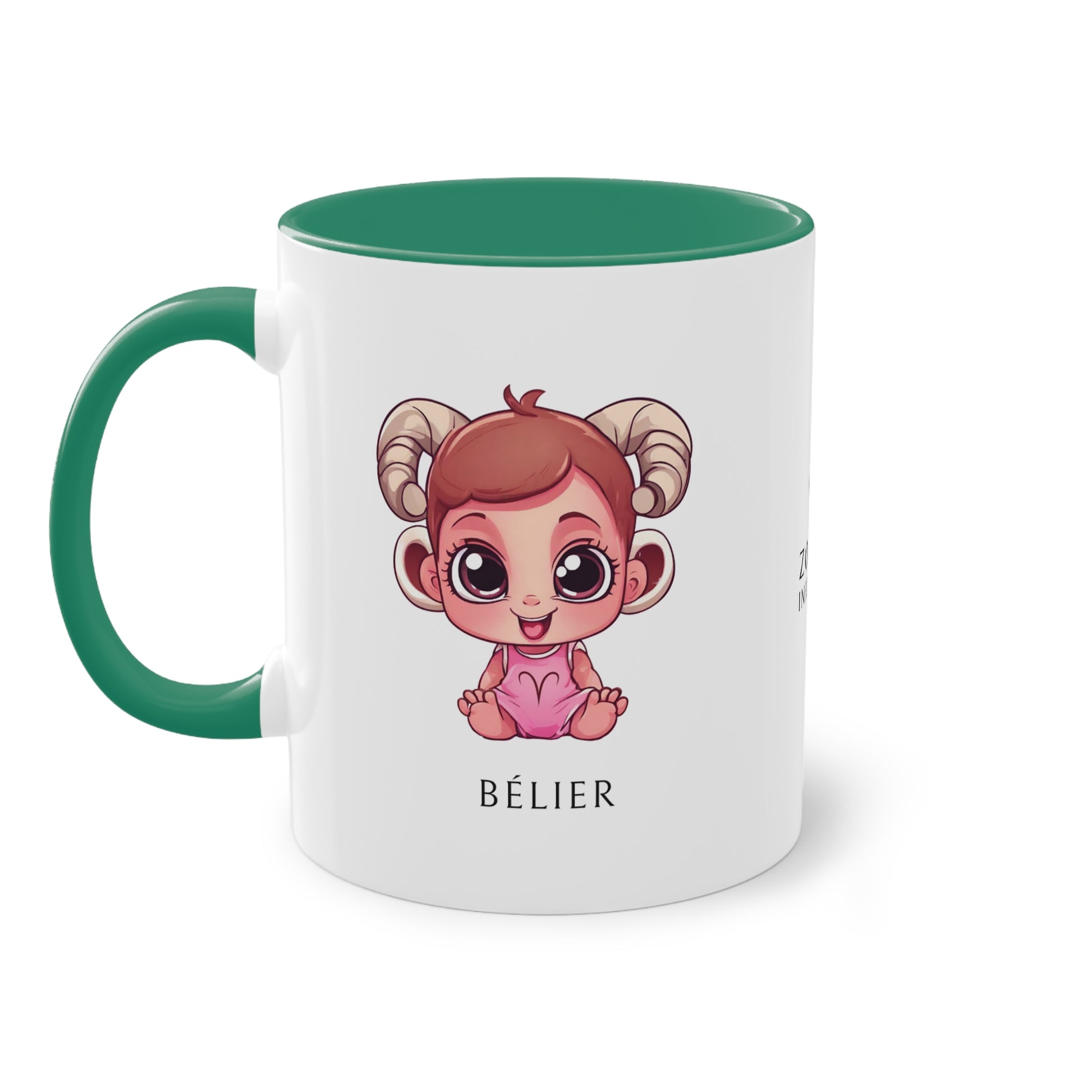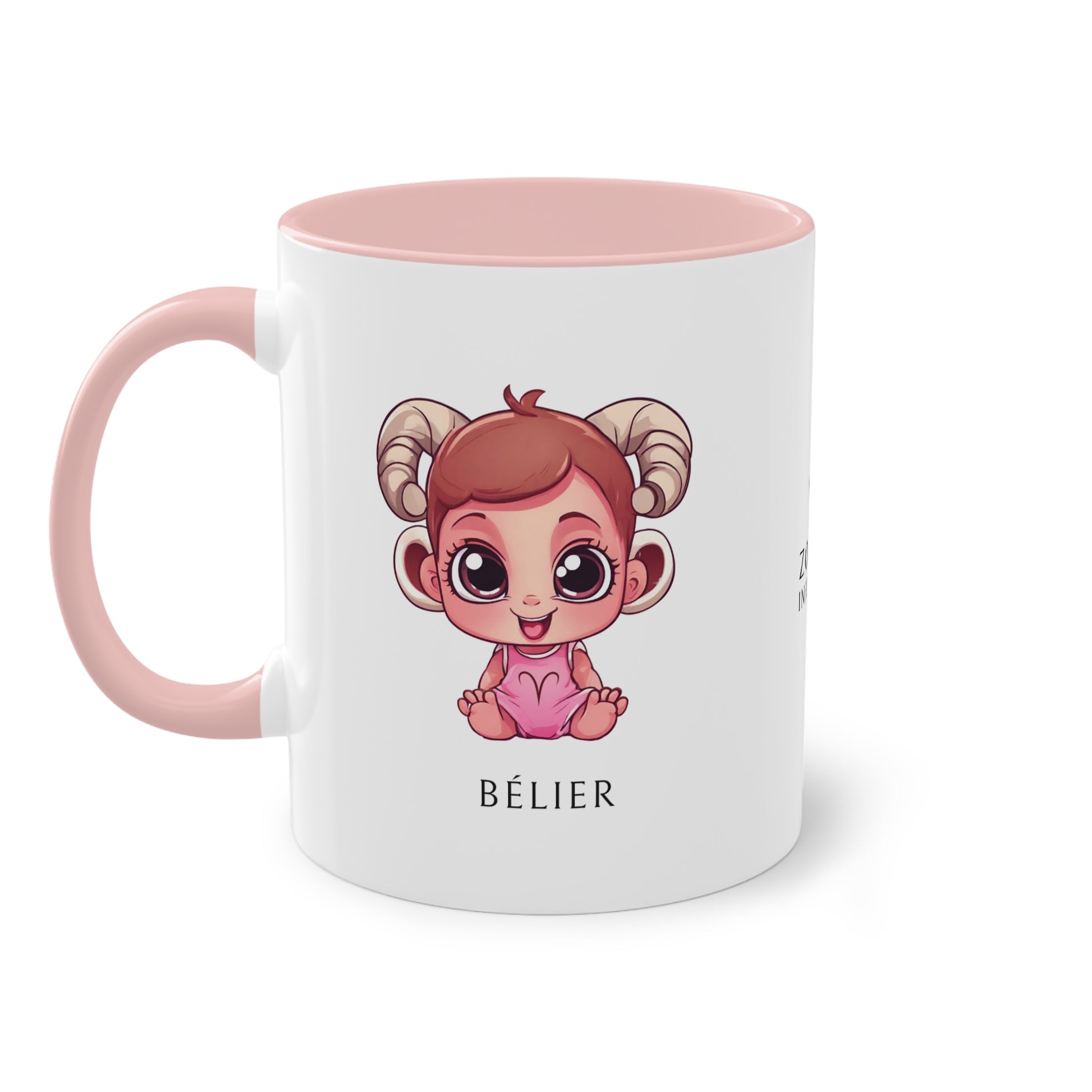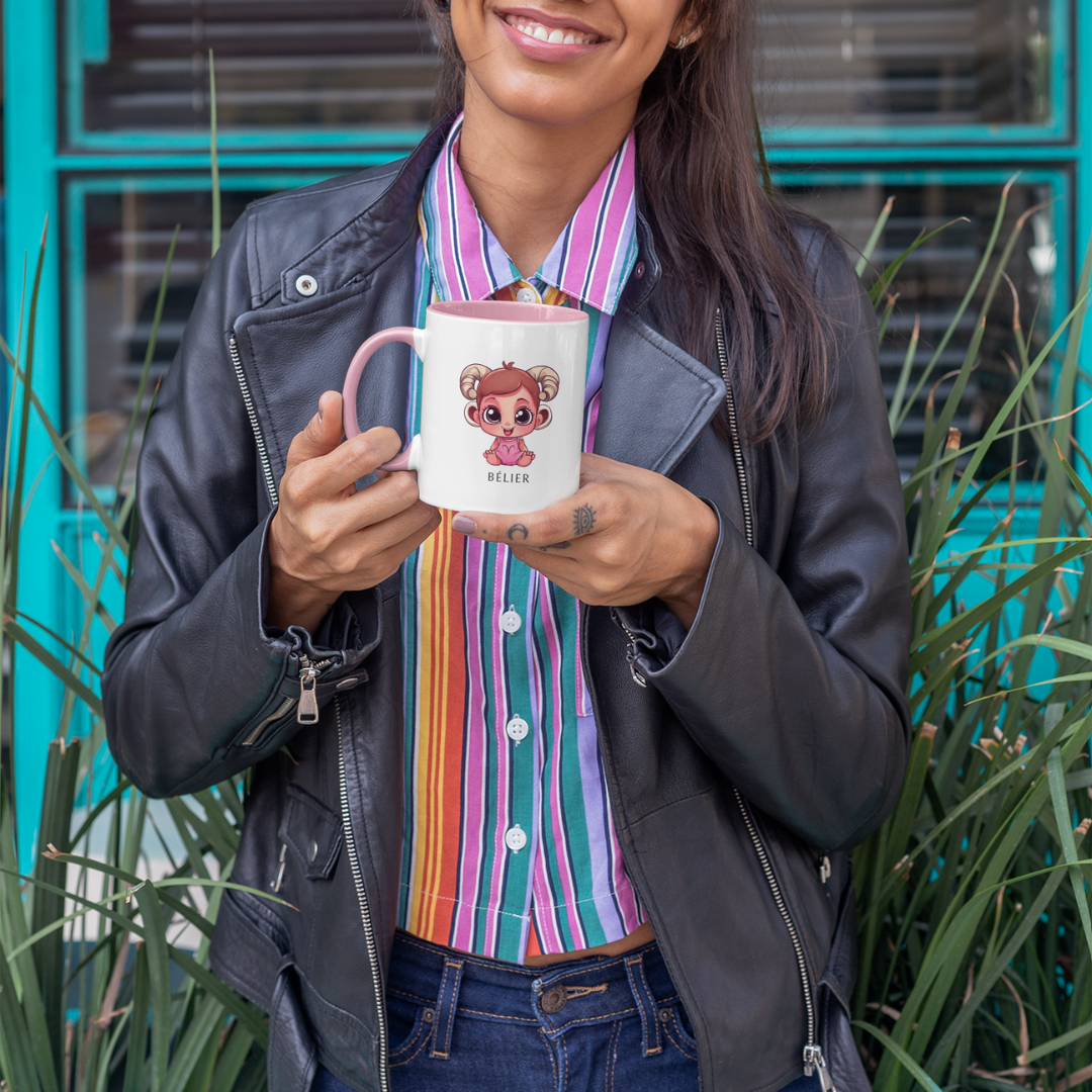 Ce magnifique mug en céramique est parfait pour toutes les occasions : café matinal, chocolat chaud ou toute autre boisson chaude. Blanc, avec un intérieur et une poignée de la couleur de votre choix, il est idéal pour les petites filles Bélier ou les femmes qui ont gardé leur âme d'enfant.
