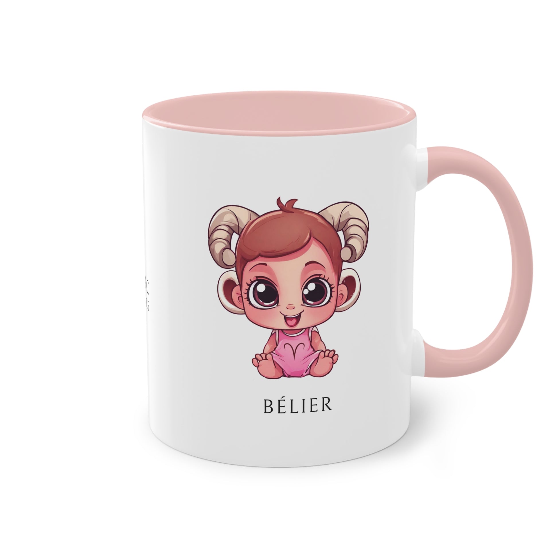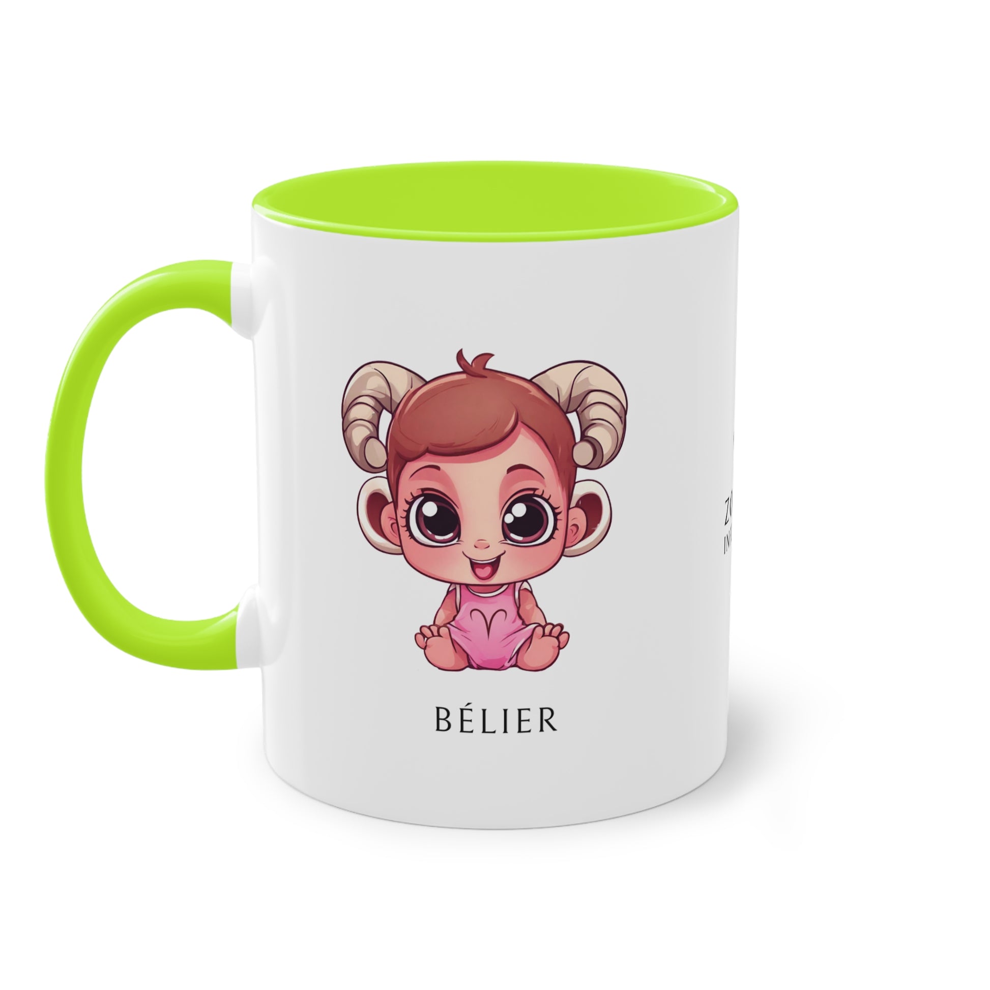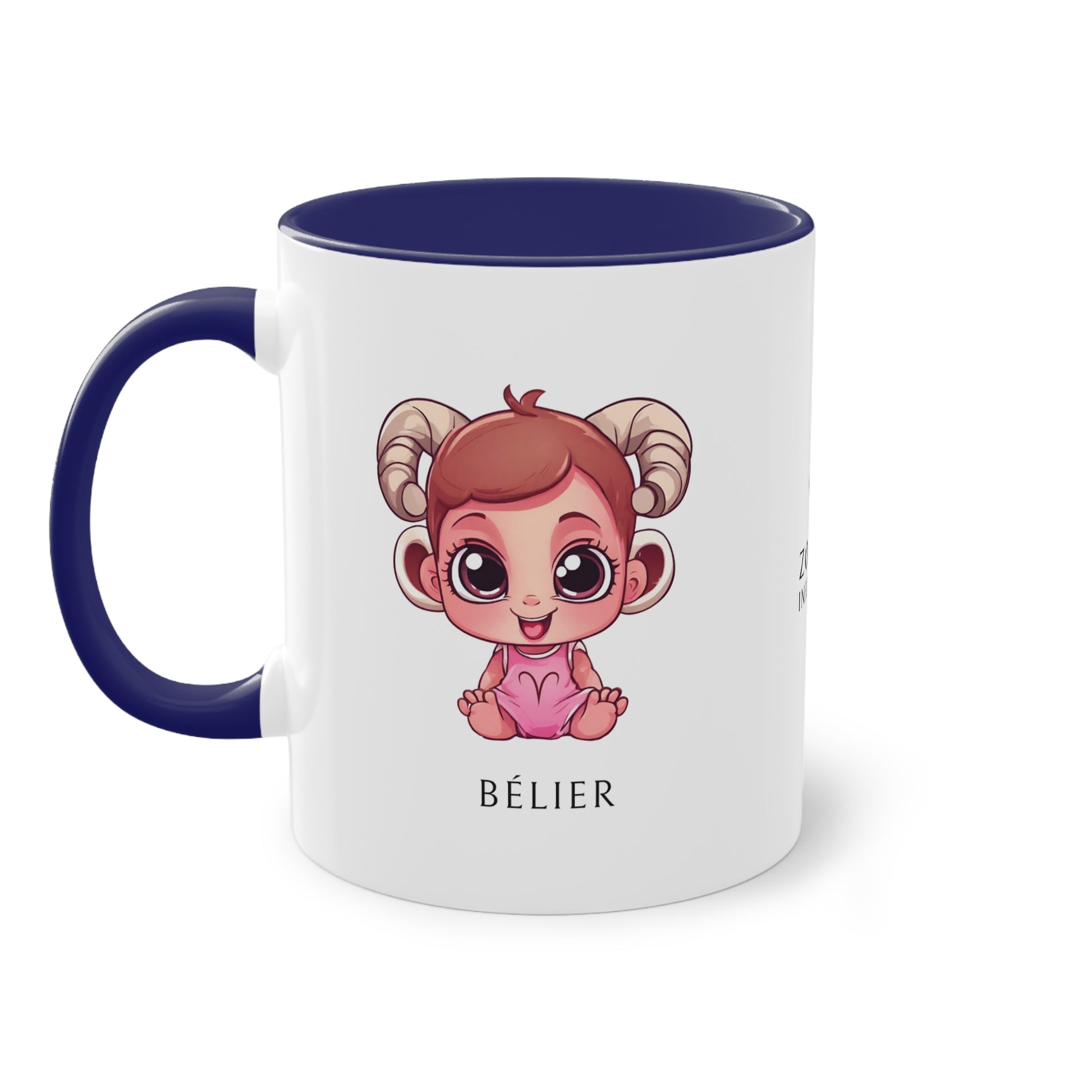 Ce magnifique mug en céramique est parfait pour toutes les occasions : café matinal, chocolat chaud ou toute autre boisson chaude. Blanc, avec un intérieur et une poignée de la couleur de votre choix, il est idéal pour les petites filles Bélier ou les femmes qui ont gardé leur âme d'enfant.