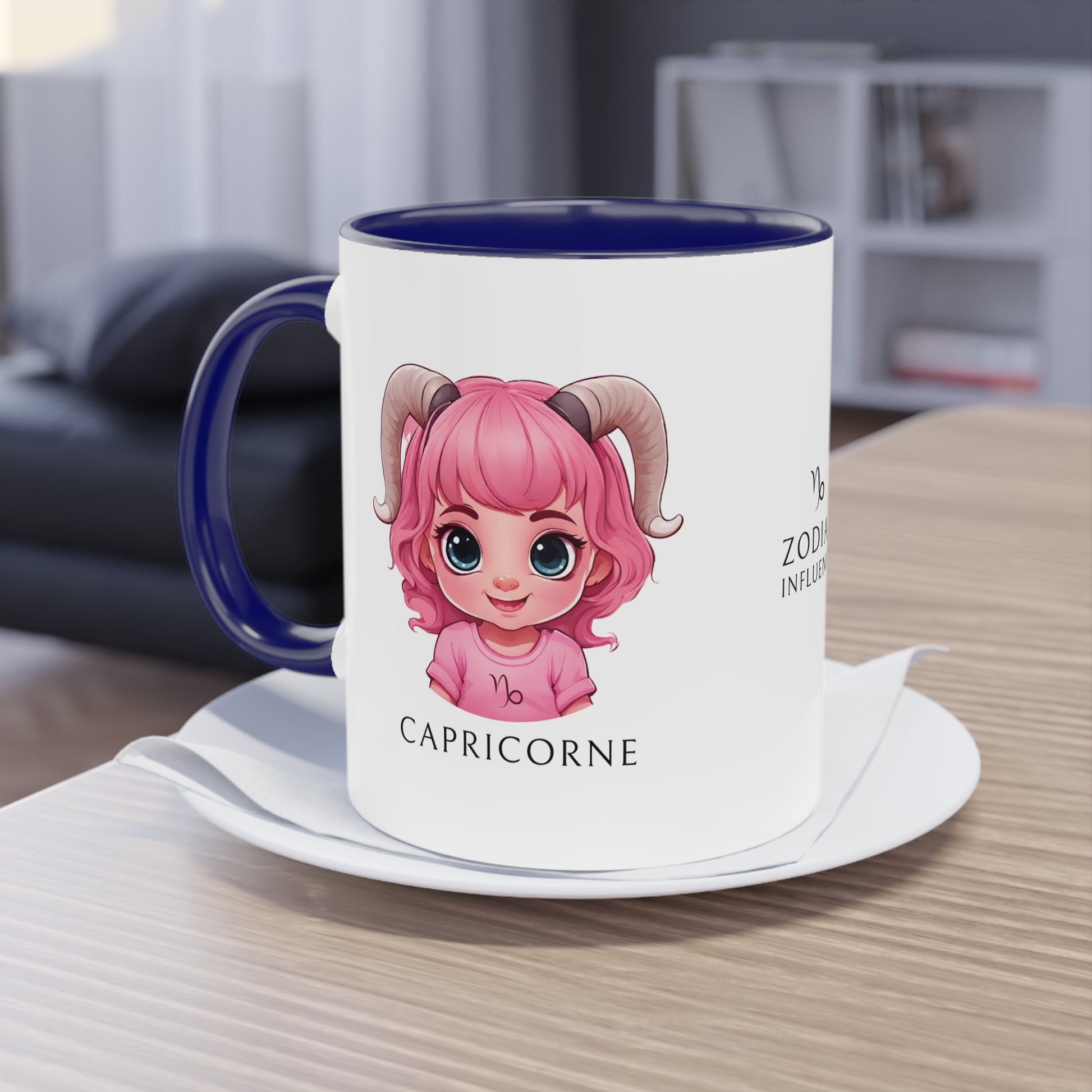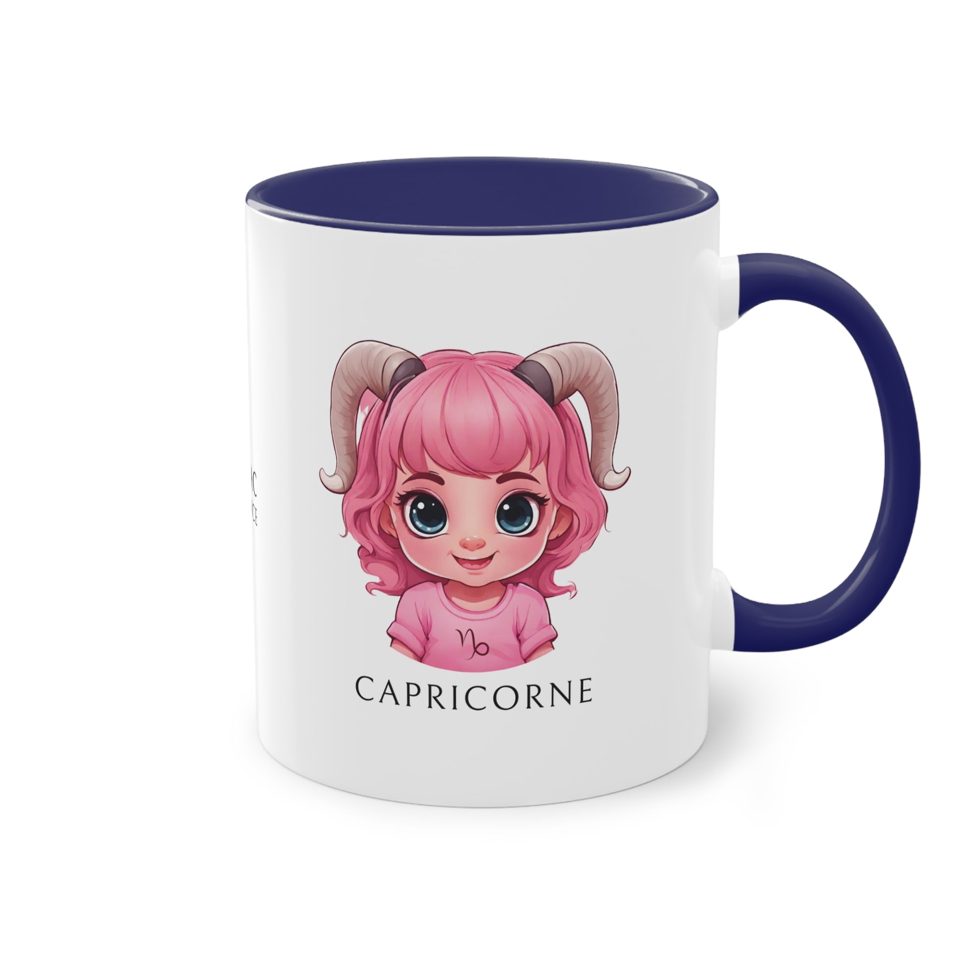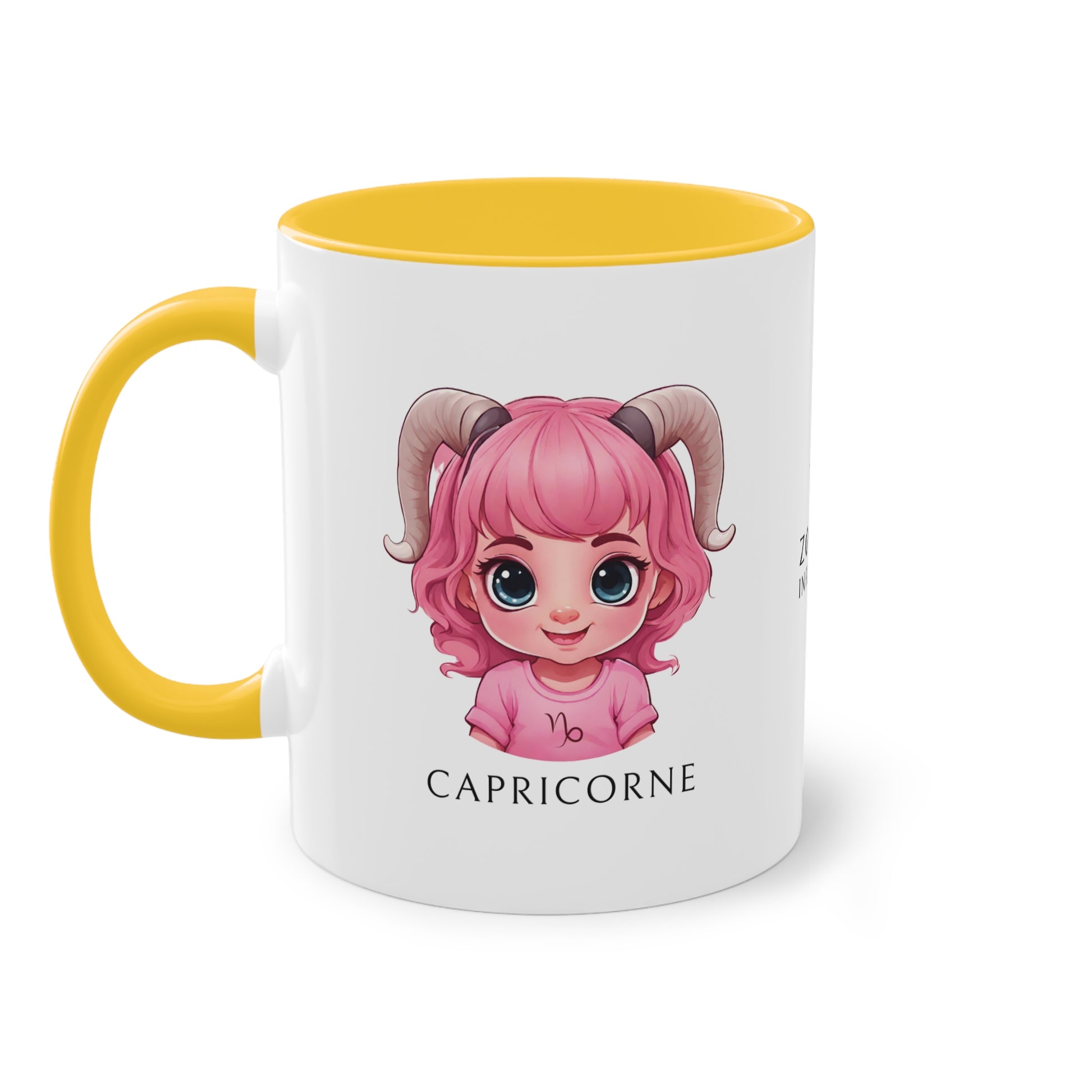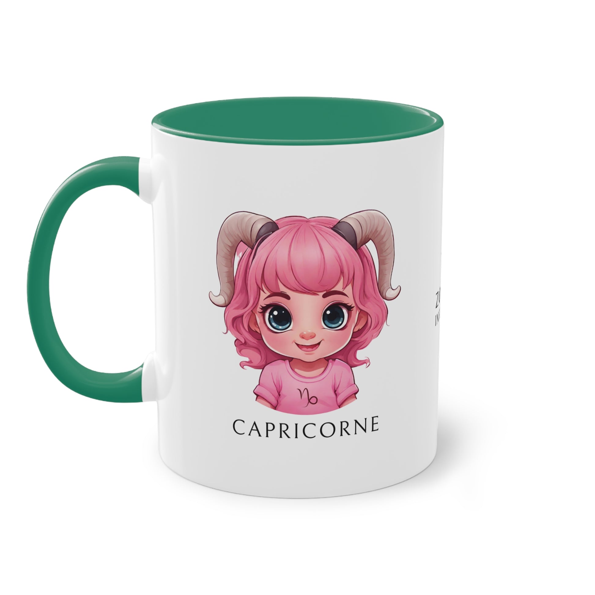Ce magnifique mug en céramique est parfait pour toutes les occasions : café matinal, chocolat chaud ou toute autre boisson chaude. Blanc, avec un intérieur et une poignée de la couleur de votre choix, il est idéal pour les petites filles Capricorne ou les femmes qui ont gardé leur âme d'enfant.