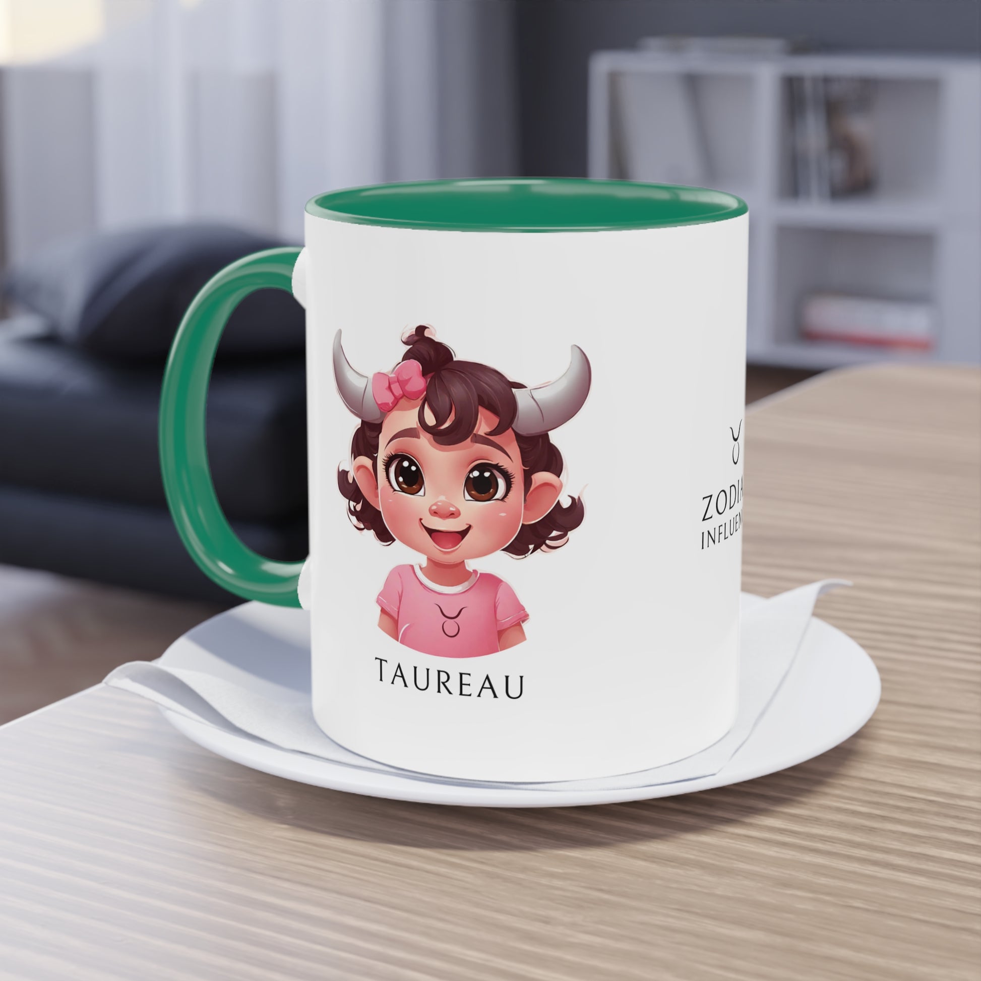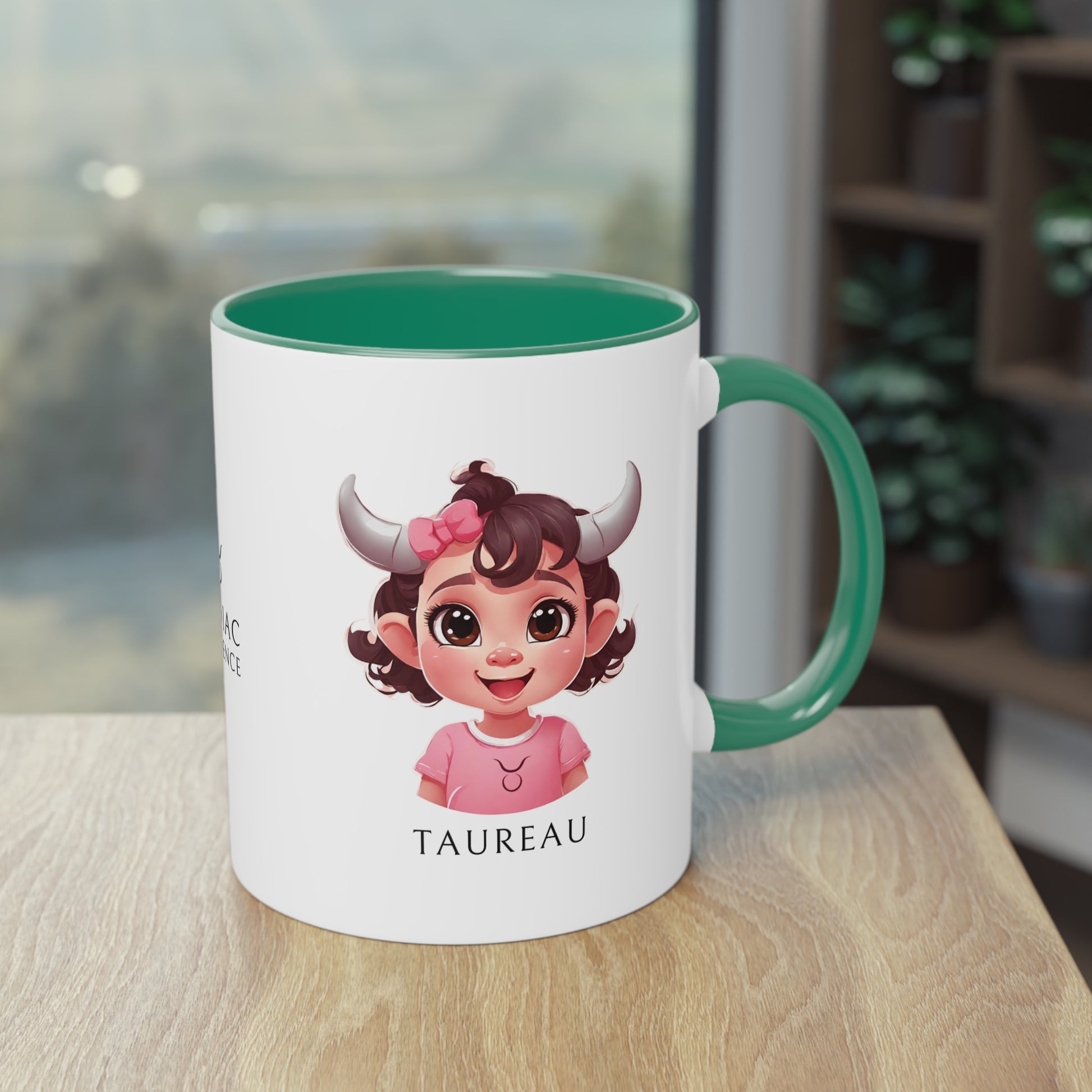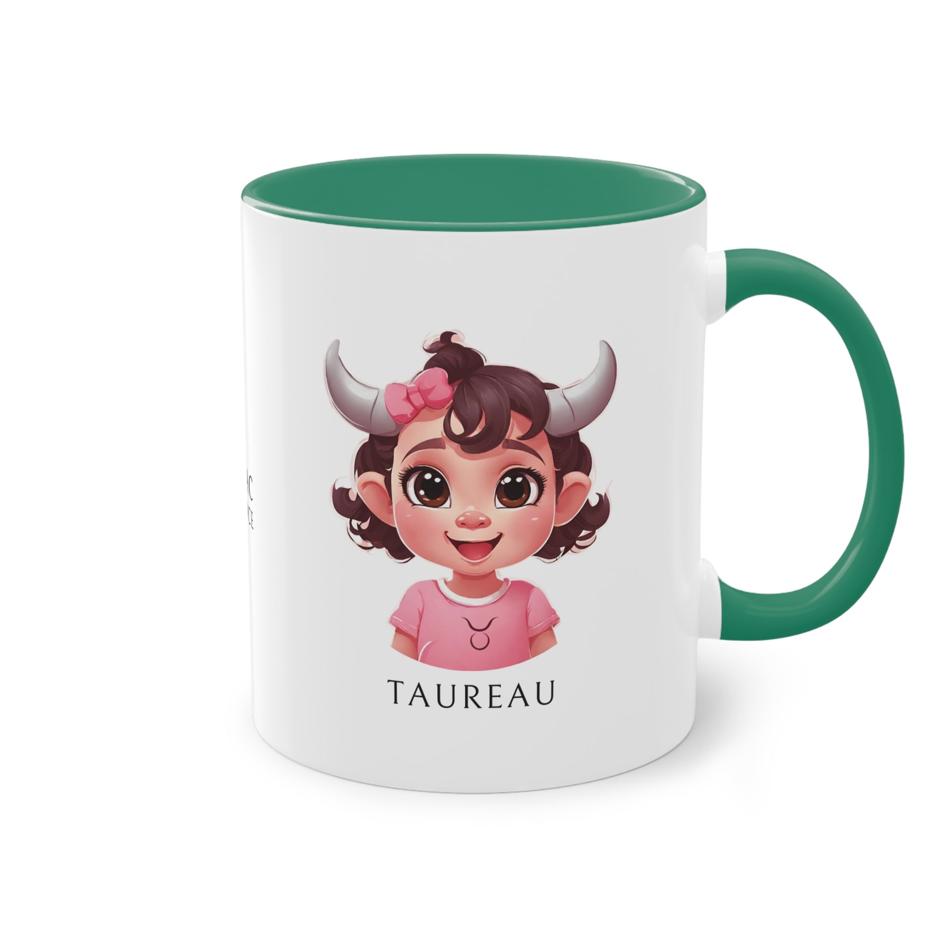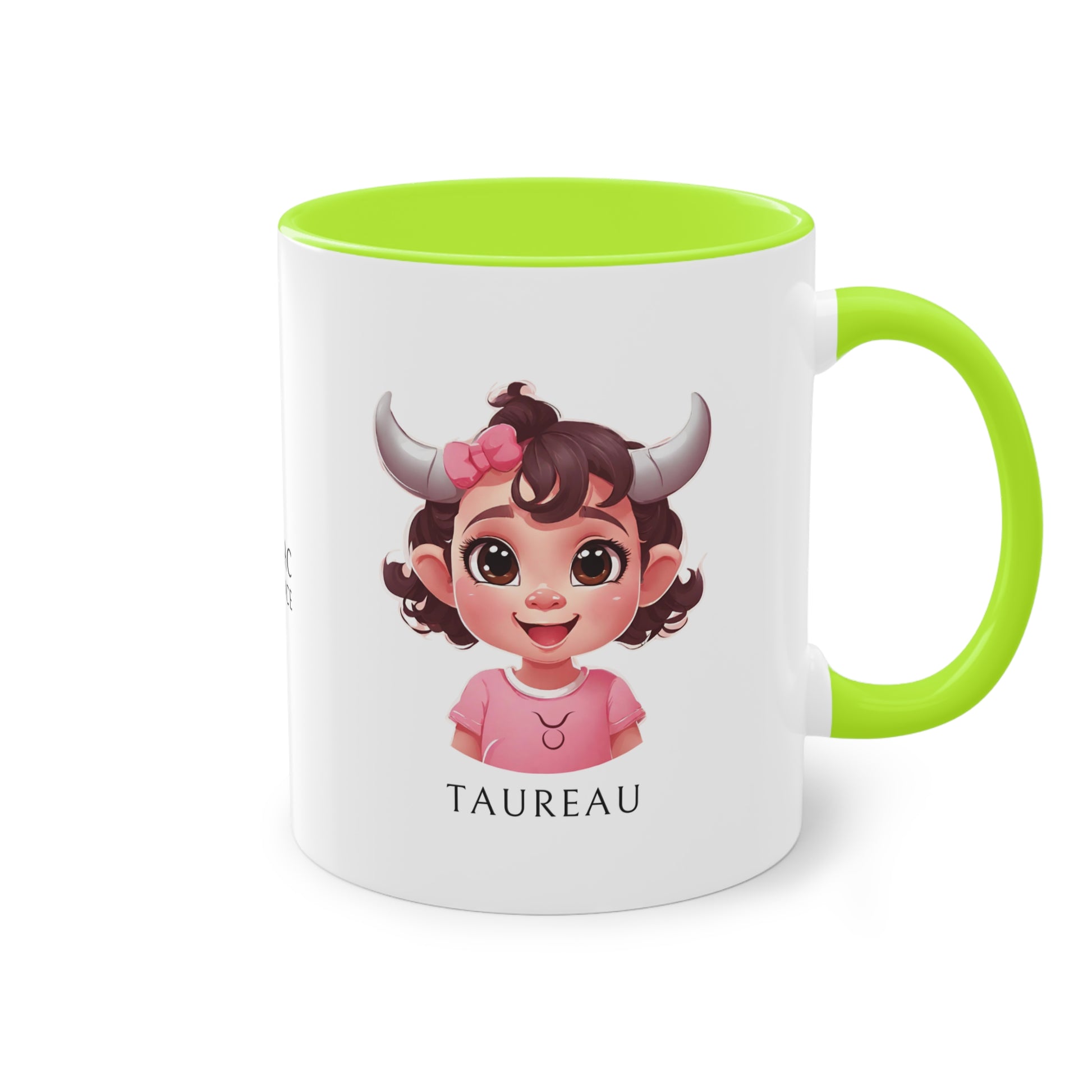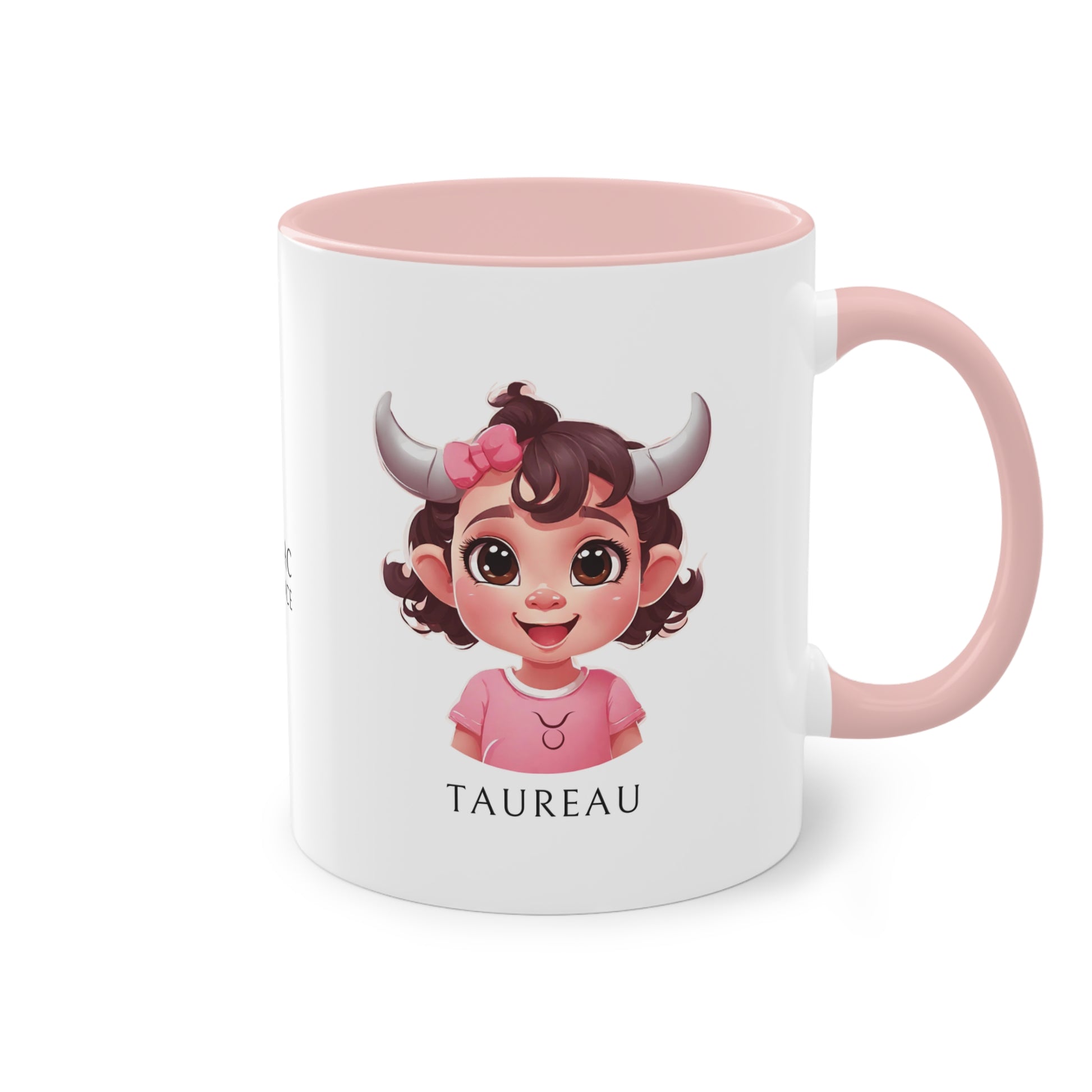 Ce magnifique mug en céramique est parfait pour toutes les occasions : café matinal, chocolat chaud ou toute autre boisson chaude. Blanc, avec un intérieur et une poignée de la couleur de votre choix, il est idéal pour les petites filles Taureau ou les femmes qui ont gardé leur âme d'enfant.