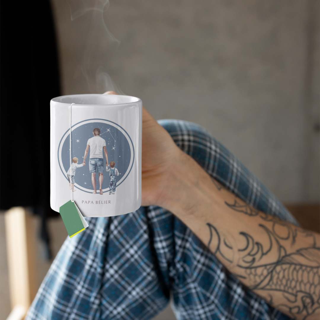 Célébrez chaque instant avec ce mug spécialement conçu pour les Papas Bélier, une véritable ode à la paternité audacieuse et pleine d'énergie. Être un Papa Bélier, c'est incarner la force, le courage, et un amour indéfectible. Vous êtes un protecteur né, prêt à tout pour vos enfants, toujours là pour les guider avec passion et détermination.