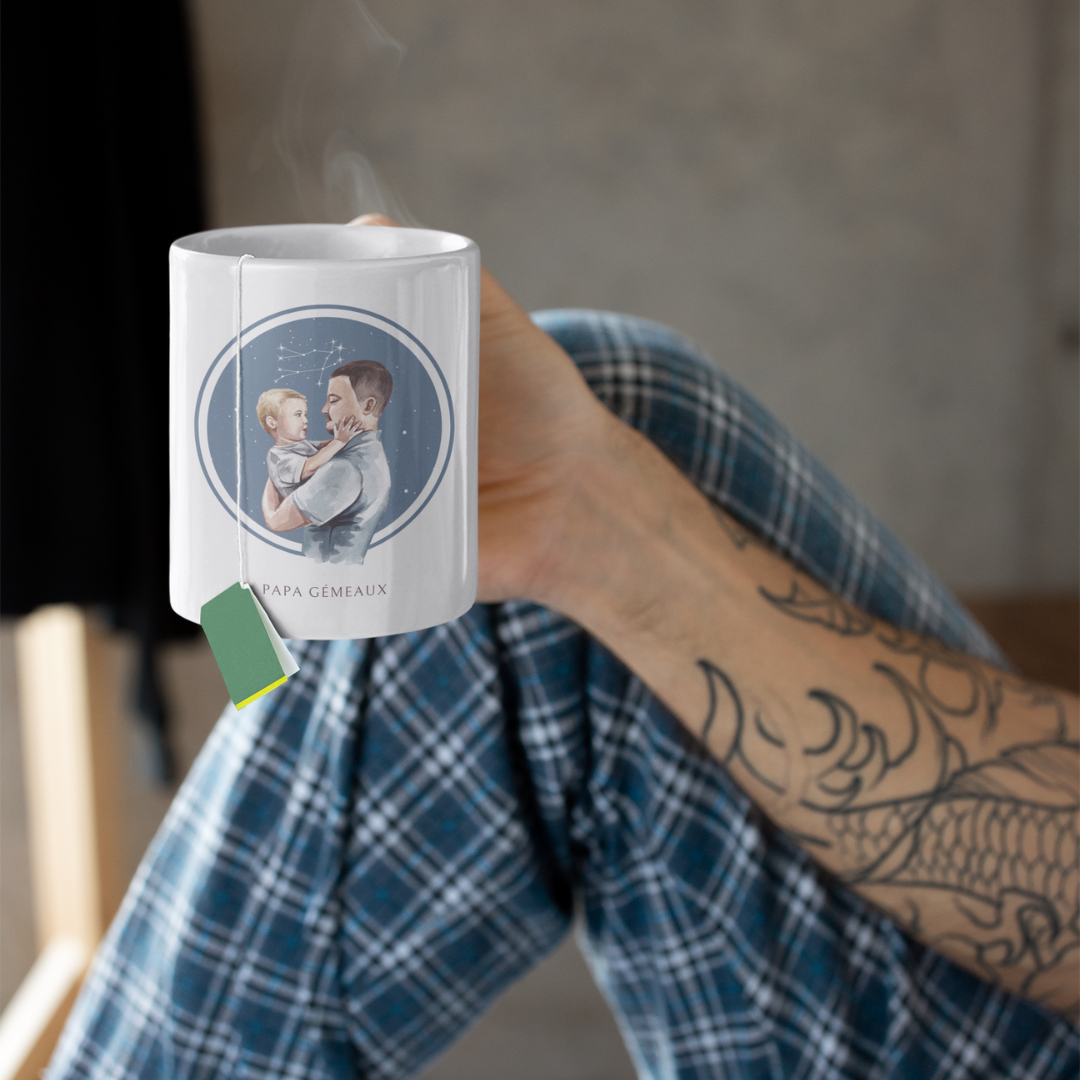 Illuminez chaque instant avec ce mug dédié aux Papas Gémeaux, une véritable célébration de la paternité pétillante et polyvalente. Être un Papa Gémeaux, c’est incarner l’esprit vif, la curiosité et une capacité incroyable à s'adapter. Vous êtes la source d’aventures et de conversations enrichissantes, toujours prête à éveiller l’esprit de vos enfants.