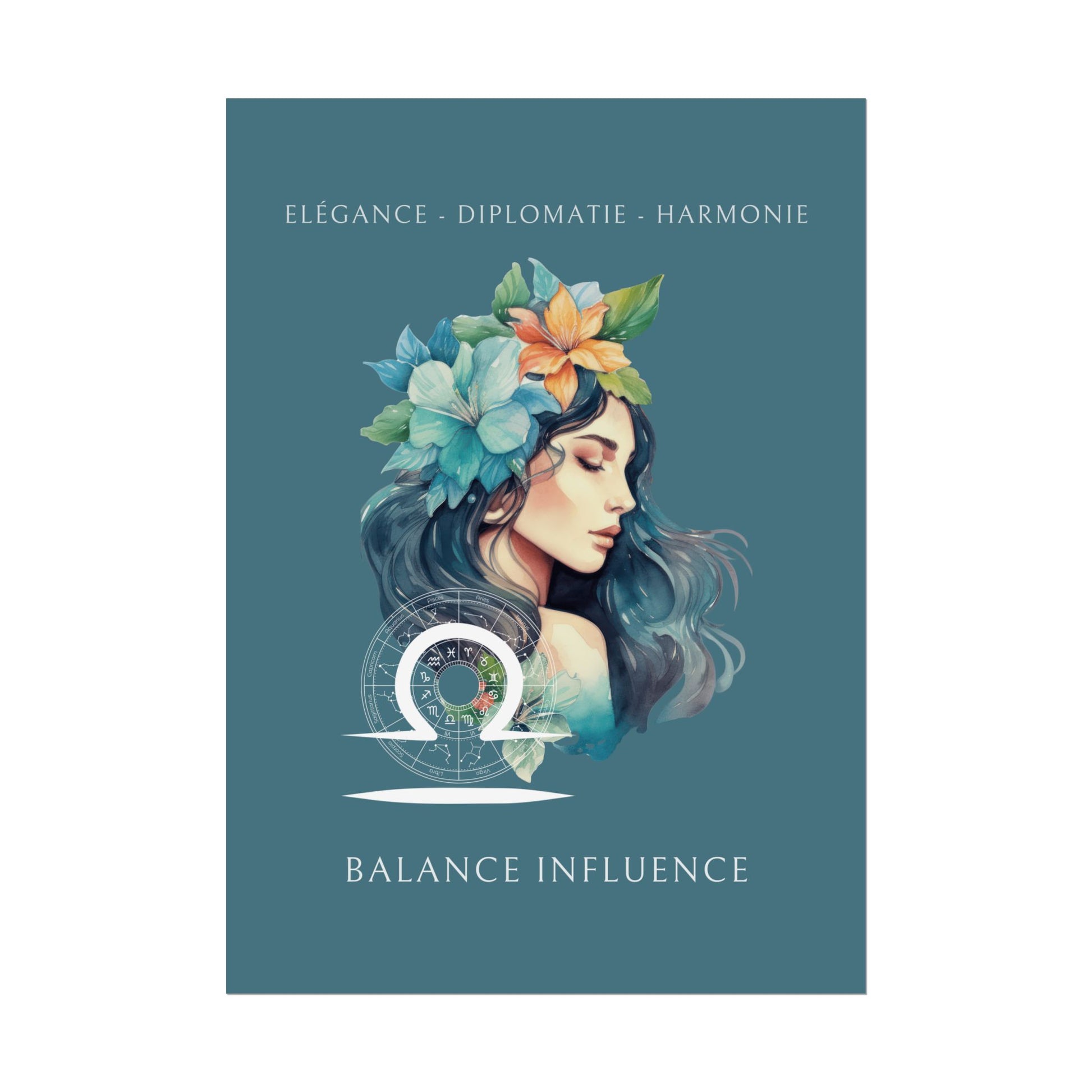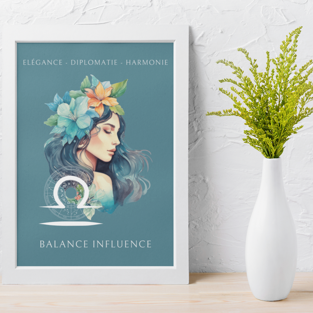 Exprimez l’élégance et l’équilibre du signe de la Balance avec ce magnifique poster, conçu pour les femmes nées sous ce signe d'air. L’illustration d'Aurélie, entourée de fleurs, incarne l’essence de la Balance tout en mettant en avant ses qualités uniques : élégance, diplomatie et harmonie.