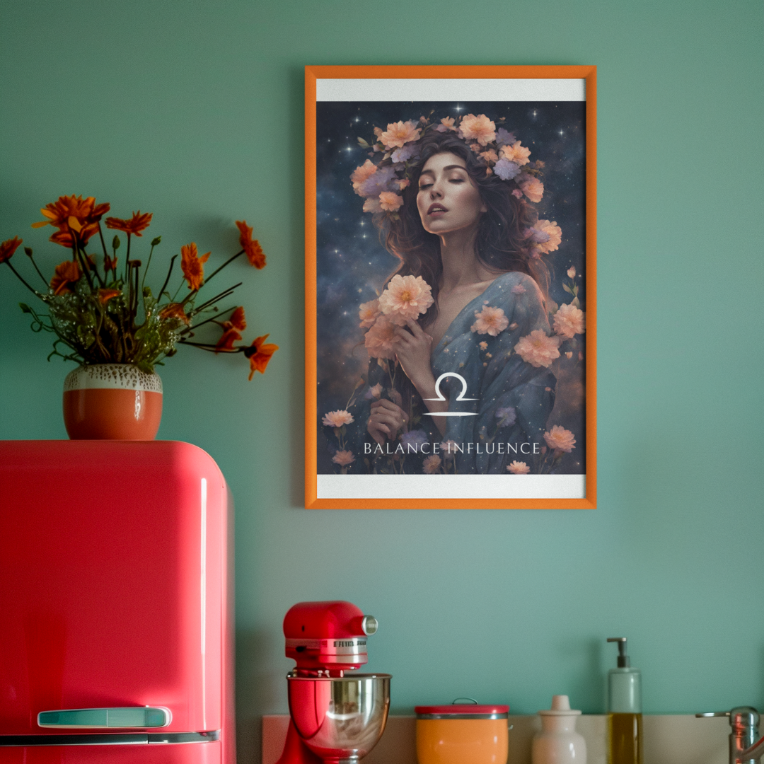 Ajoutez une touche de raffinement et d'équilibre à votre intérieur avec ce poster spécialement conçu pour les femmes nées sous le signe de la Balance. Entourée de fleurs sous un ciel étoilé, Elisa incarne l'essence de ce signe d'air, élégant et harmonieux.