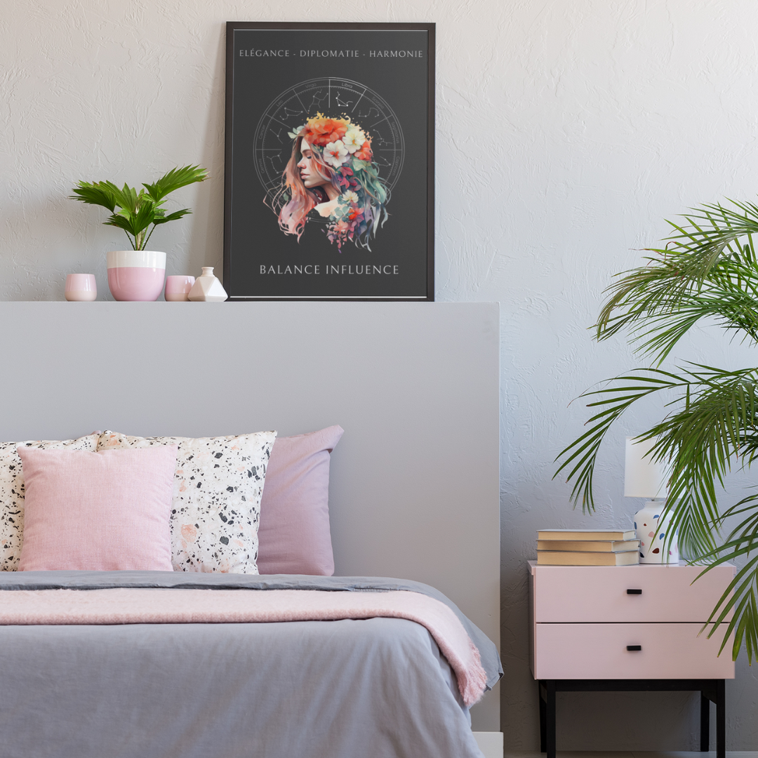 Exprimez l’élégance et l’équilibre du signe de la Balance avec ce magnifique poster, conçu pour les femmes nées sous ce signe d'air. L’illustration de Fanny, entourée de fleurs, incarne l’essence de la Balance tout en mettant en avant ses qualités uniques : élégance, diplomatie et harmonie.