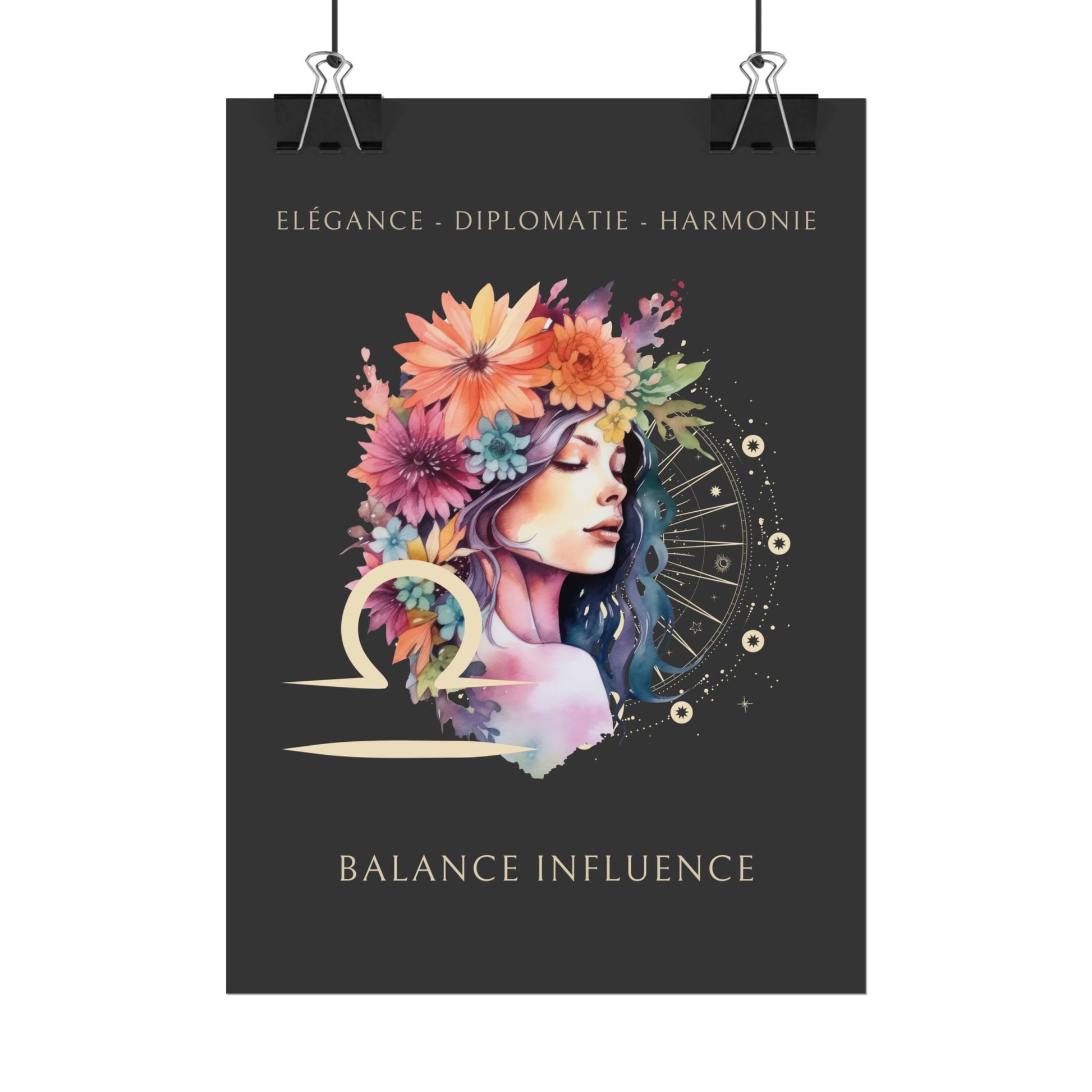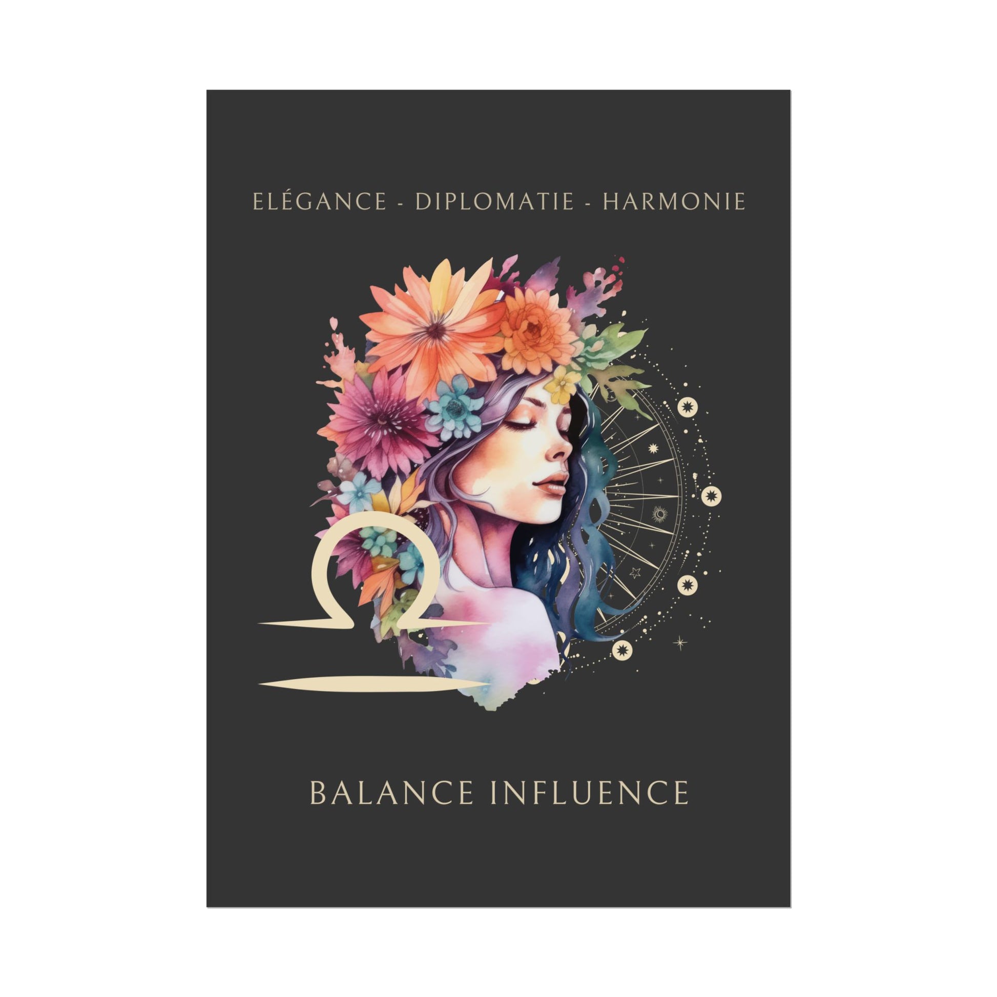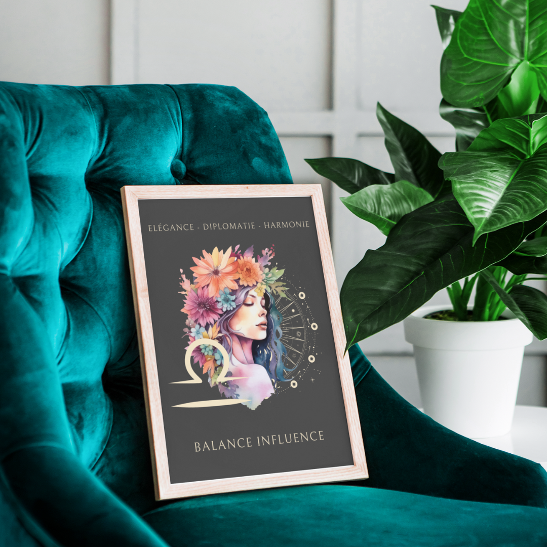 Exprimez l’élégance et l’équilibre du signe de la Balance avec ce magnifique poster, conçu pour les femmes nées sous ce signe d'air. L’illustration de Mélanie, entourée de fleurs, incarne l’essence de la Balance tout en mettant en avant ses qualités uniques : élégance, diplomatie et harmonie.