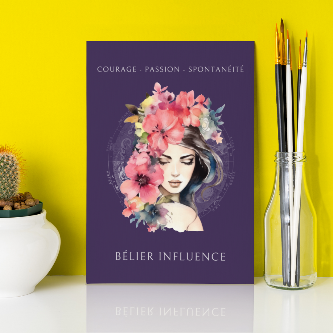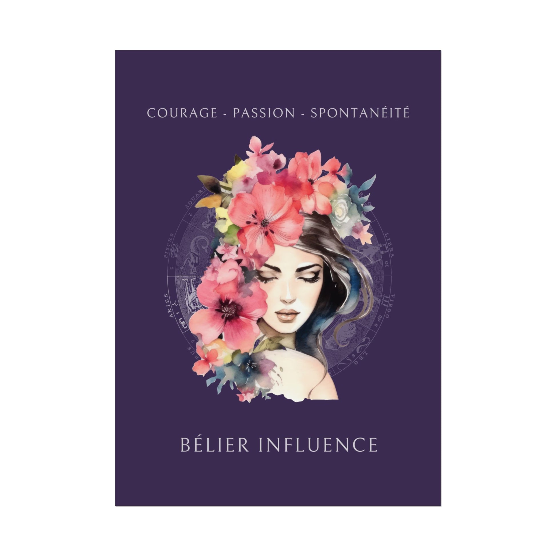 Exprimez la force et la passion du signe du Bélier avec ce magnifique poster, conçu pour les femmes nées sous ce signe de feu. L’illustration d'Iris, couronnée de fleurs, capture l’essence du Bélier tout en mettant en avant ses qualités uniques : courage, passion et spontanéité.