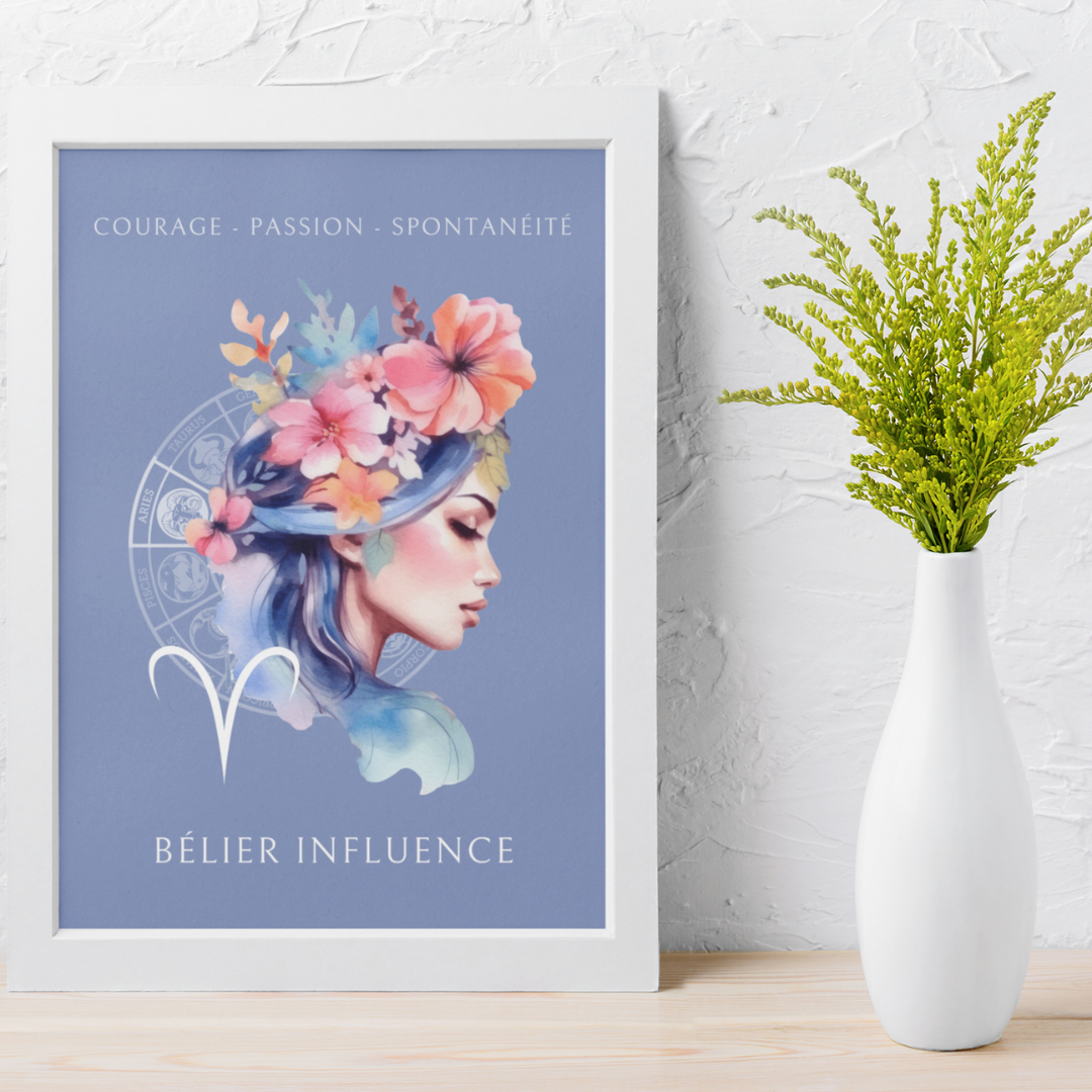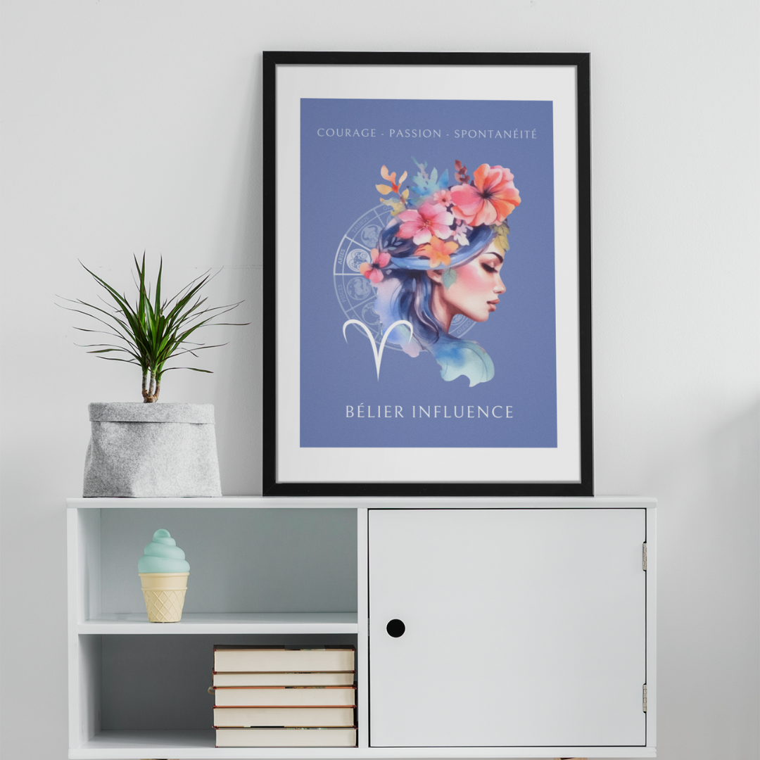 Exprimez la force et la passion du signe du Bélier avec ce magnifique poster, conçu pour les femmes nées sous ce signe de feu. L’illustration de Jasmine, couronnée de fleurs, capture l’essence du Bélier tout en mettant en avant ses qualités uniques : courage, passion et spontanéité.