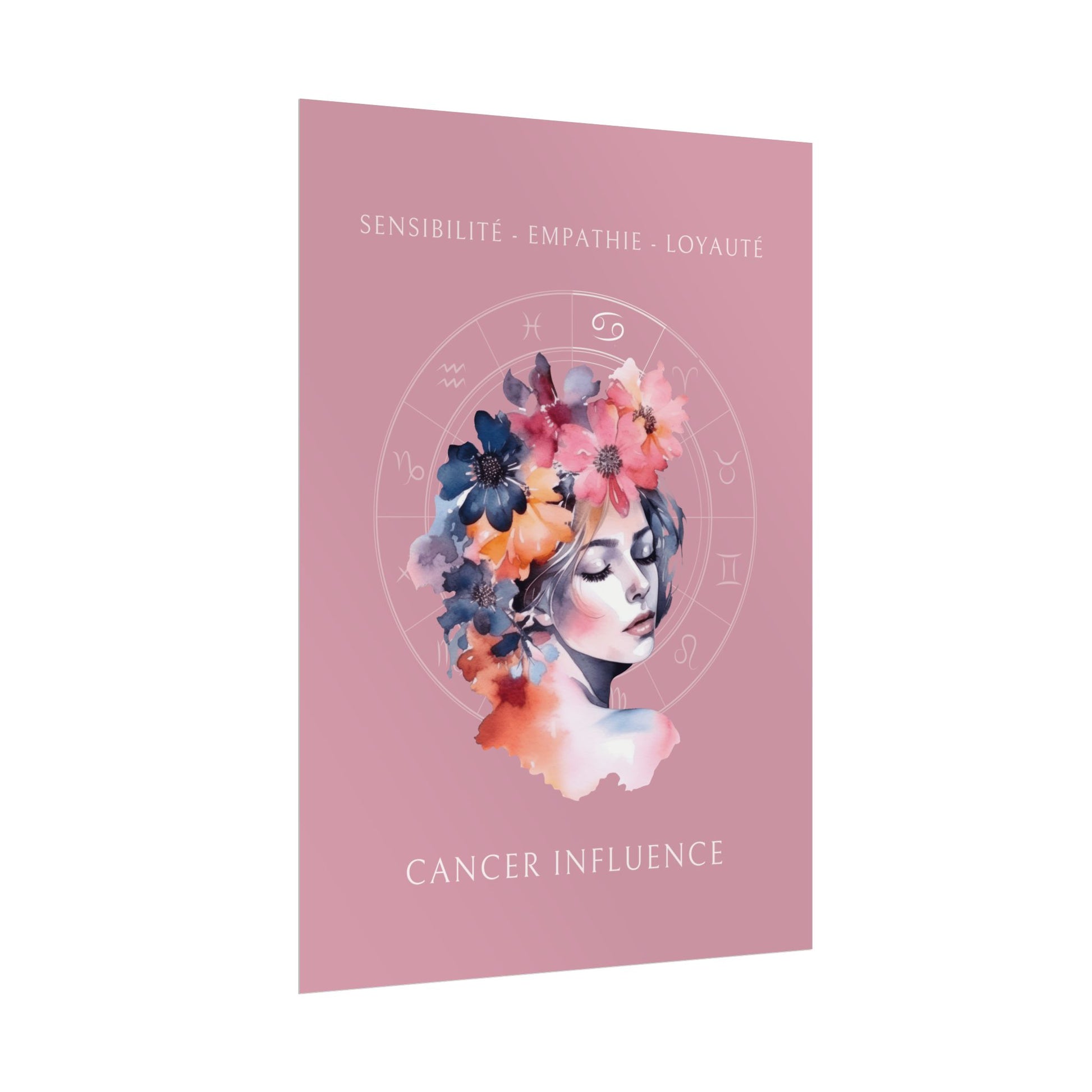 Exprimez la sensibilité et la douceur du signe du Cancer avec ce magnifique poster, conçu pour les femmes nées sous ce signe d'eau. L’illustration de Christine, entourée de fleurs, capture l’essence du Cancer tout en mettant en avant ses qualités uniques : sensibilité, empathie et loyauté.