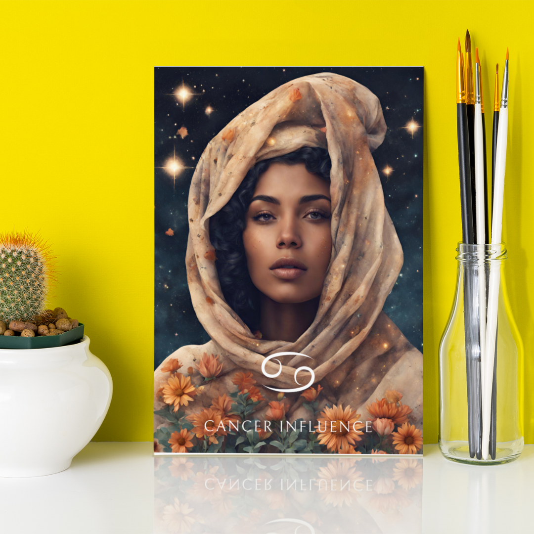 Apportez une ambiance douce et émotive à votre intérieur avec ce poster spécialement conçu pour les femmes nées sous le signe du Cancer. Entourée de fleurs sous un ciel étoilé, Jihane incarne l'essence de ce signe d'eau, protecteur et intuitif.