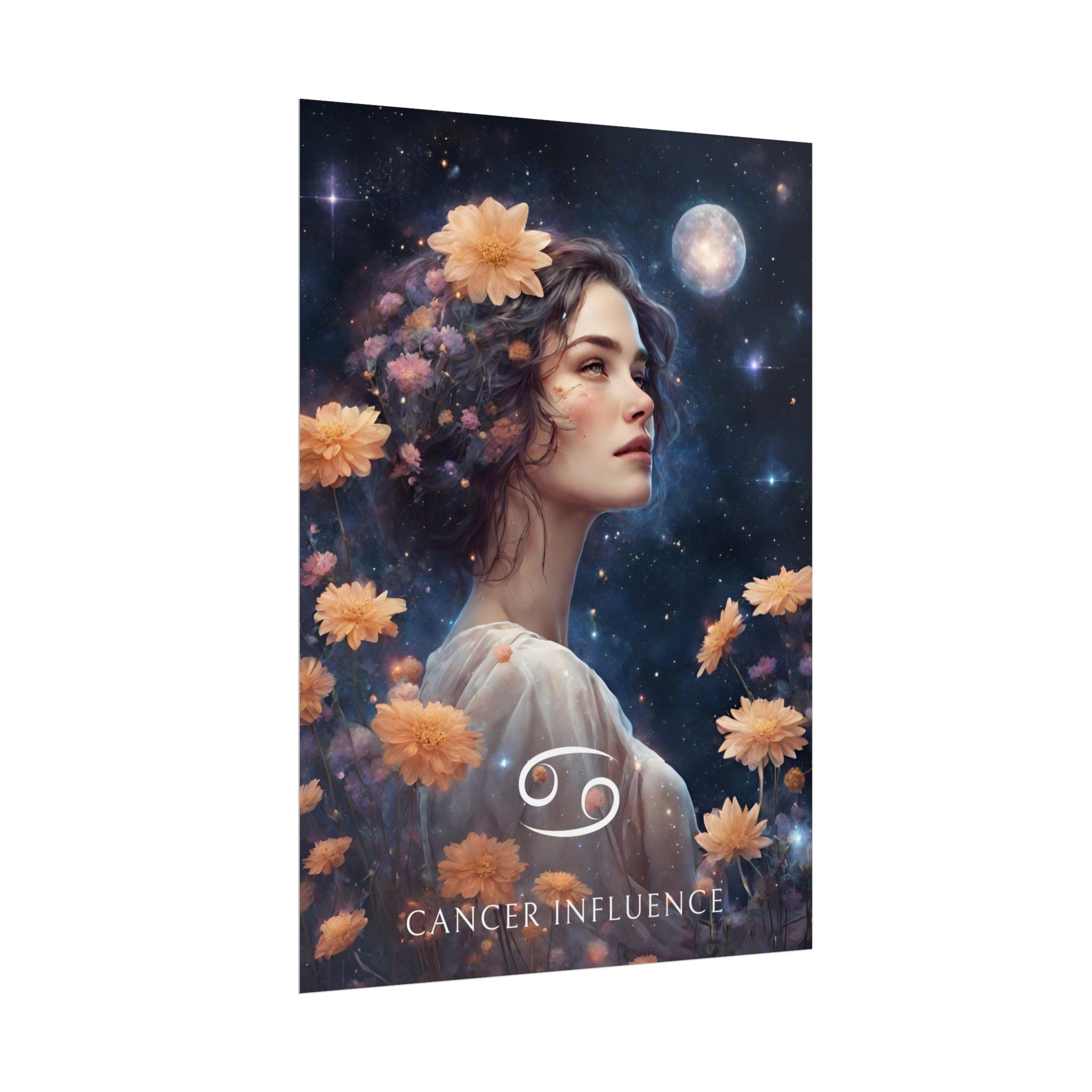 Apportez une ambiance douce et émotive à votre intérieur avec ce poster spécialement conçu pour les femmes nées sous le signe du Cancer. Entourée de fleurs sous un ciel étoilé, Sophie incarne l'essence de ce signe d'eau, protecteur et intuitif.