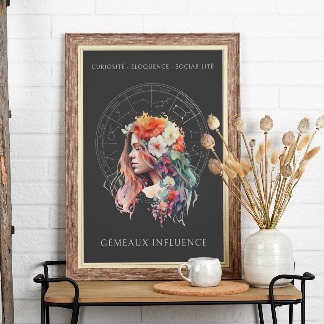 Poster Astrologique Gémeaux - "Fanny, Femme Gémeaux"
