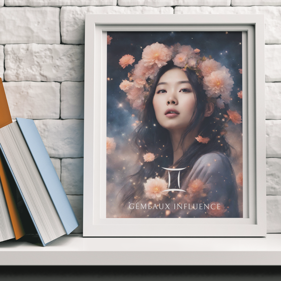 Ajoutez une touche d’éclat et de vivacité à votre espace, conçu pour les femmes nées sous le signe des Gémeaux. Entourée de fleurs et sous un ciel étoilé, Meiying capture l'essence de ce signe d'air, curieux et versatile.