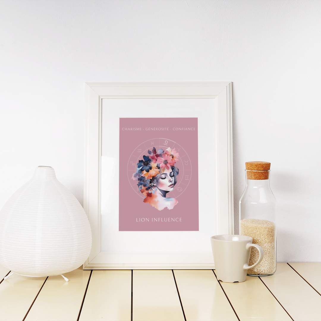 Exprimez le charisme et la force du signe du Lion avec ce magnifique poster, conçu pour les femmes nées sous ce signe de feu. L’illustration de Christine, entourée de fleurs, incarne l’essence du Lion tout en mettant en avant ses qualités uniques : charisme, générosité et confiance.