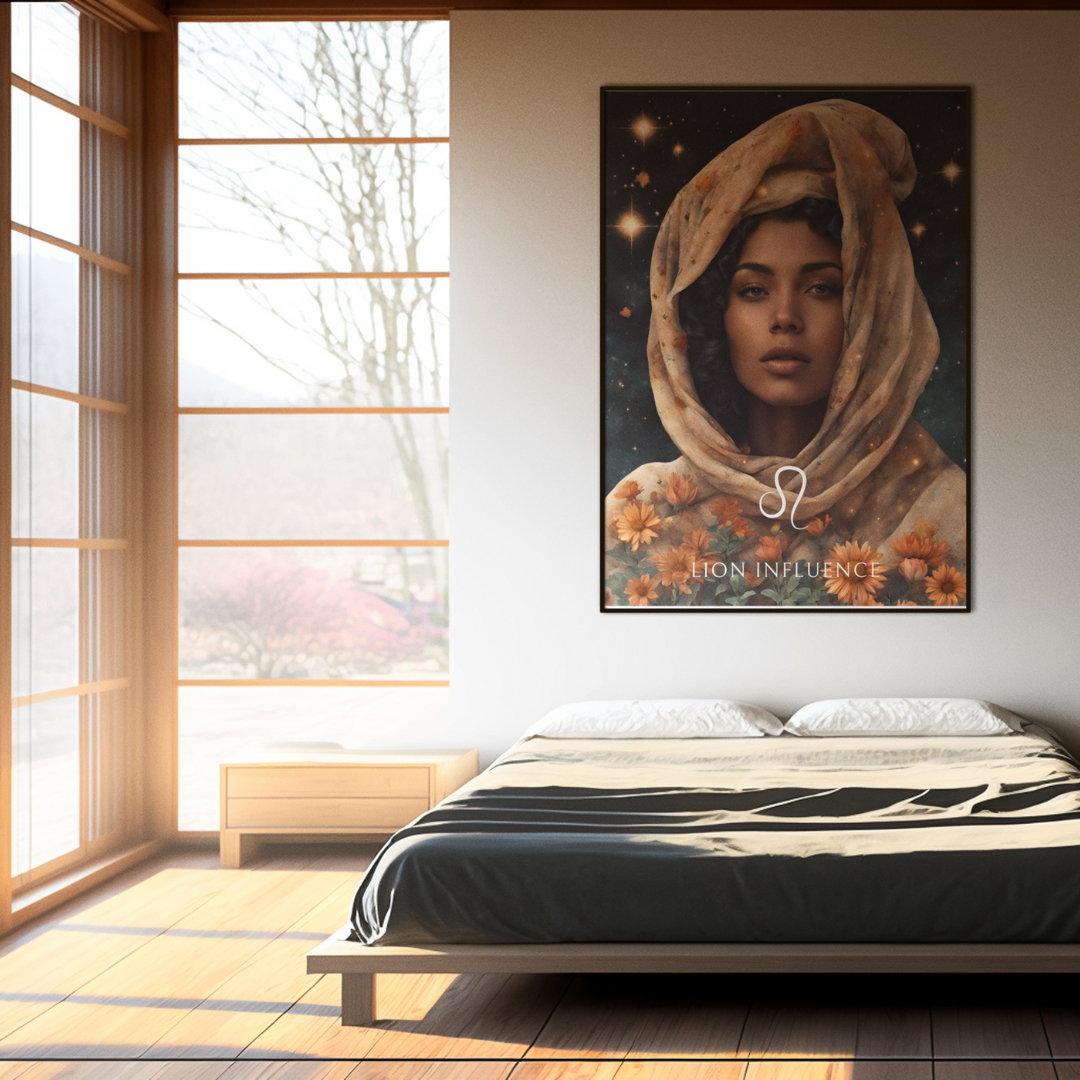 Apportez une touche de charisme et de chaleur à votre intérieur avec ce poster spécialement conçu pour les femmes nées sous le signe du Lion. Entourée de fleurs sous un ciel étoilé, Jihane incarne l'essence de ce signe de feu, rayonnant et confiant.