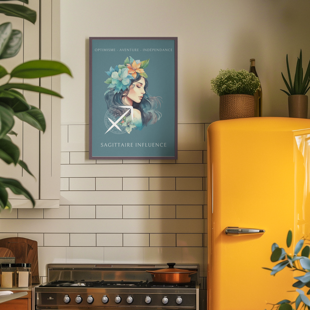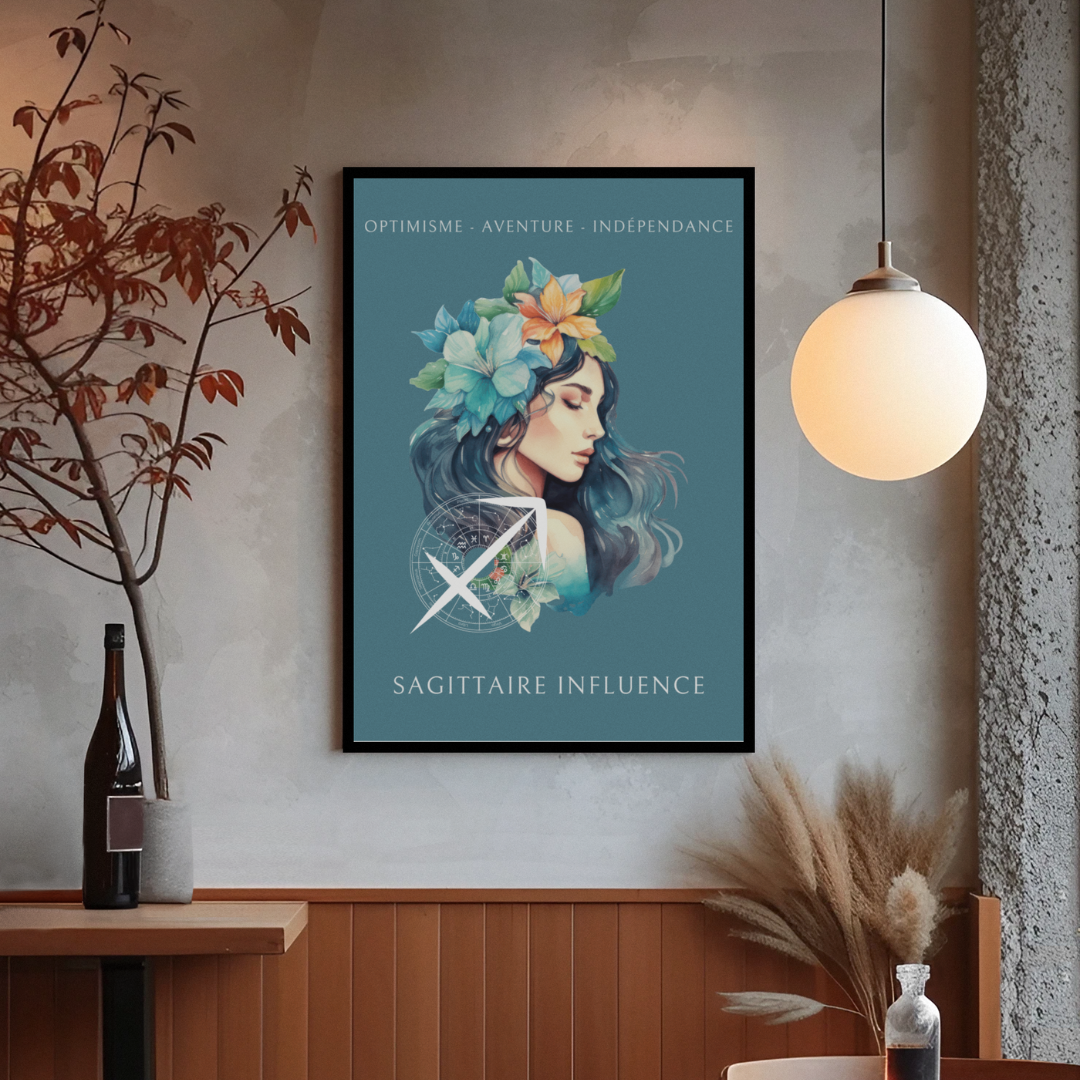 Exprimez l’optimisme et l’esprit d’aventure du signe du Sagittaire avec ce magnifique poster, conçu pour les femmes nées sous ce signe de feu. L’illustration d'Aurélie, entourée de fleurs, capture l’essence du Sagittaire tout en mettant en avant ses qualités uniques : optimisme, aventure et indépendance.