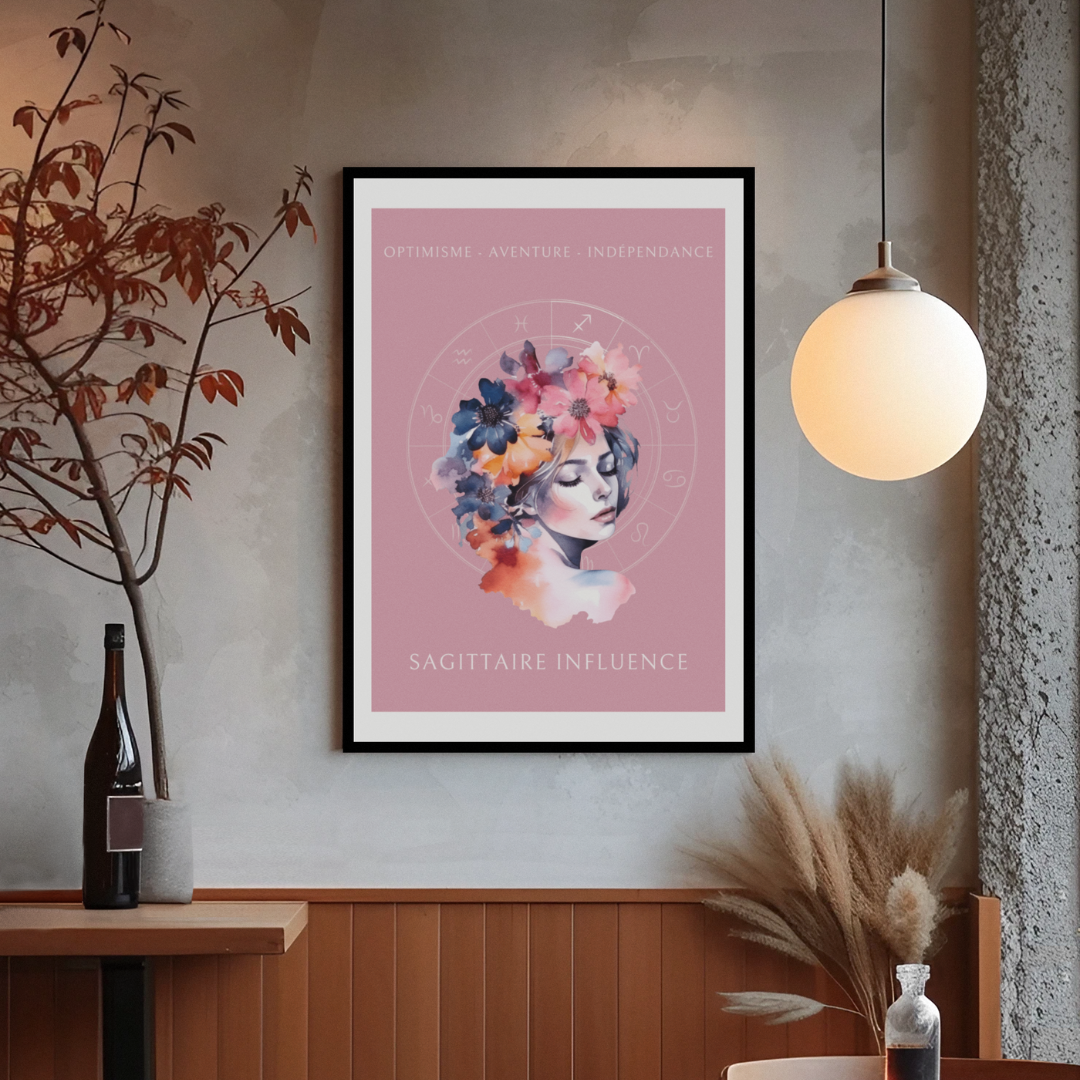Exprimez l’optimisme et l’esprit d’aventure du signe du Sagittaire avec ce magnifique poster, conçu pour les femmes nées sous ce signe de feu. L’illustration de Christine, entourée de fleurs, capture l’essence du Sagittaire tout en mettant en avant ses qualités uniques : optimisme, aventure et indépendance.