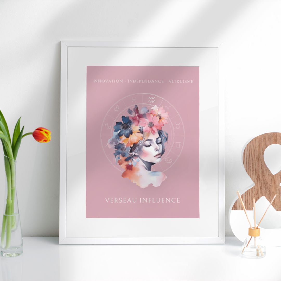 Exprimez l’originalité et la générosité du signe du Verseau avec ce magnifique poster, conçu pour les femmes nées sous ce signe d'air. L’illustration de Christine, entourée de fleurs, incarne l’essence du Verseau tout en mettant en avant ses qualités uniques : innovation, indépendance et altruisme.