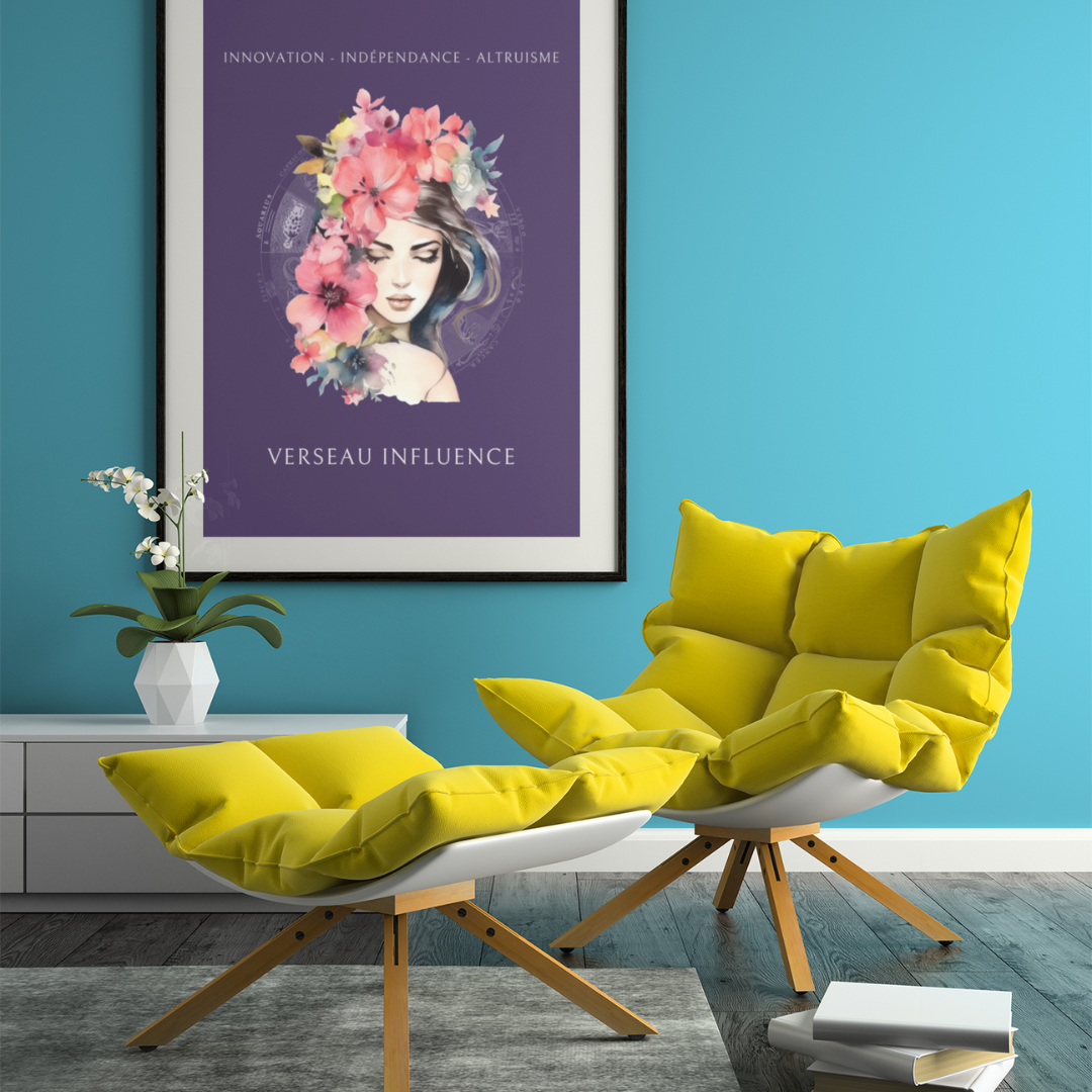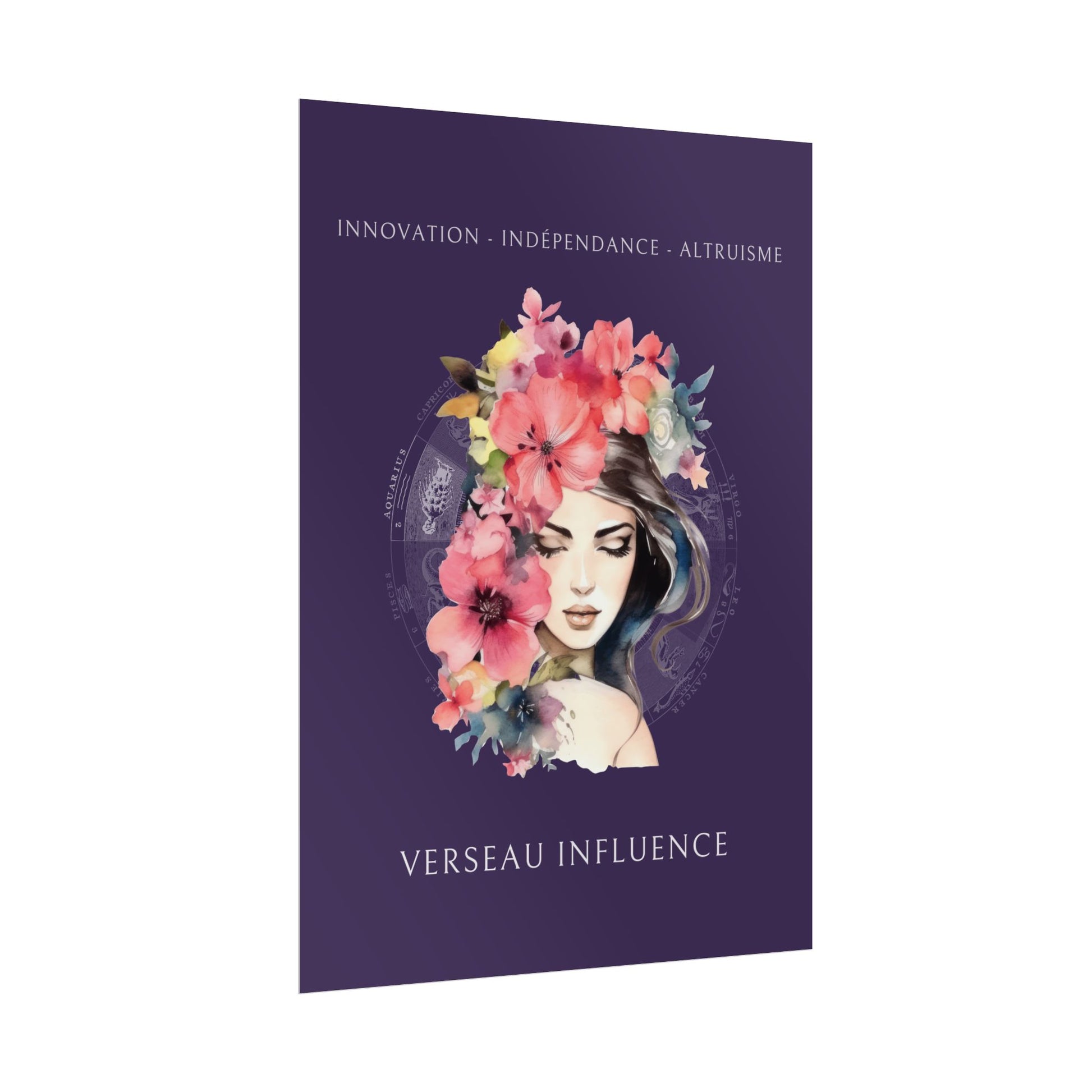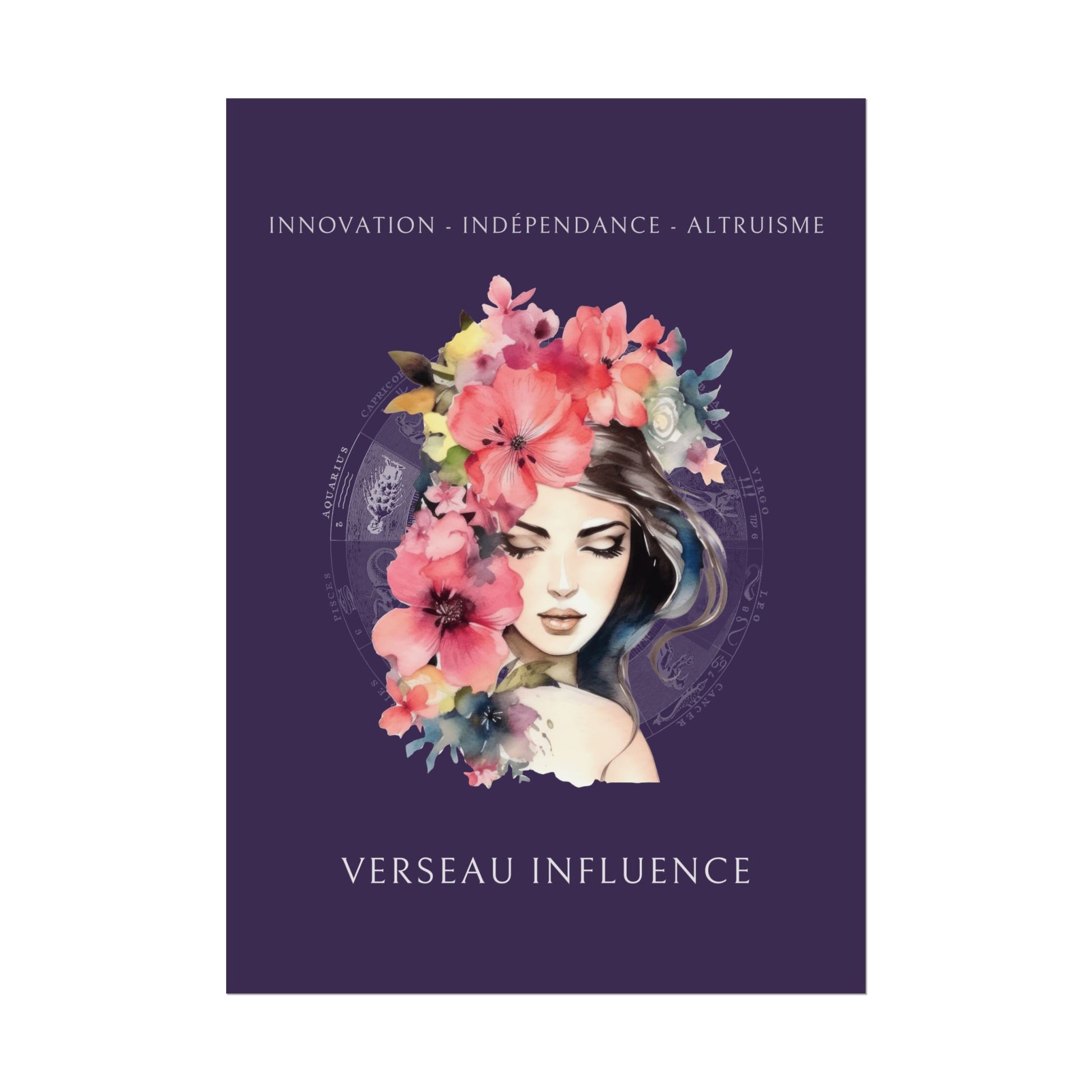 Exprimez l’originalité et la générosité du signe du Verseau avec ce magnifique poster, conçu pour les femmes nées sous ce signe d'air. L’illustration d'Iris, entourée de fleurs, incarne l’essence du Verseau tout en mettant en avant ses qualités uniques : innovation, indépendance et altruisme.