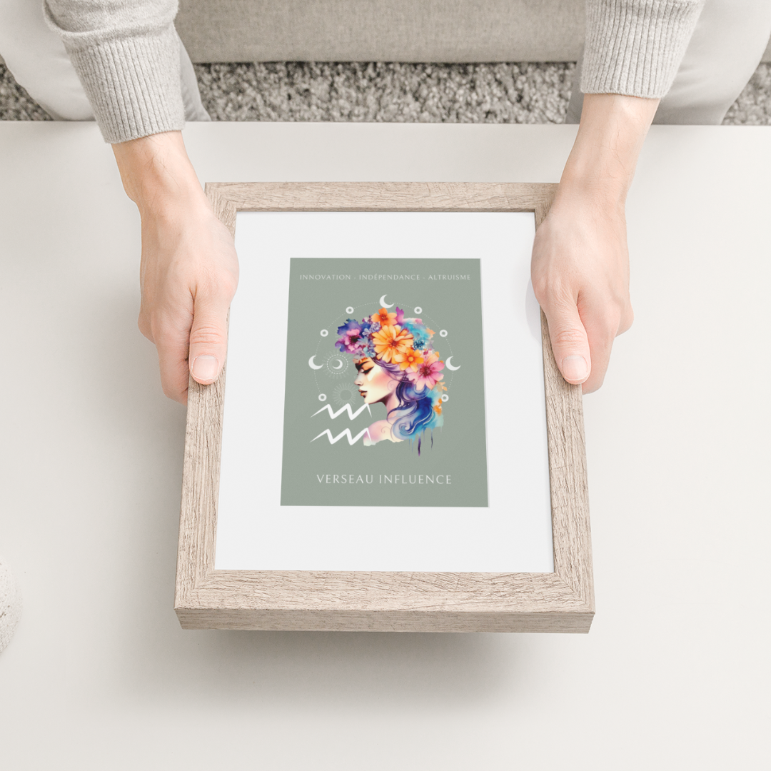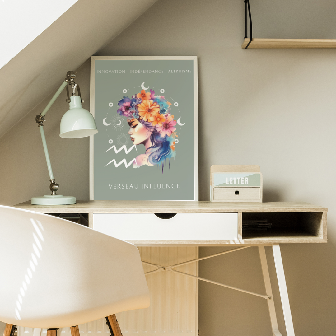 Exprimez l’originalité et la générosité du signe du Verseau avec ce magnifique poster, conçu pour les femmes nées sous ce signe d'air. L’illustration de Léa, entourée de fleurs, incarne l’essence du Verseau tout en mettant en avant ses qualités uniques : innovation, indépendance et altruisme.