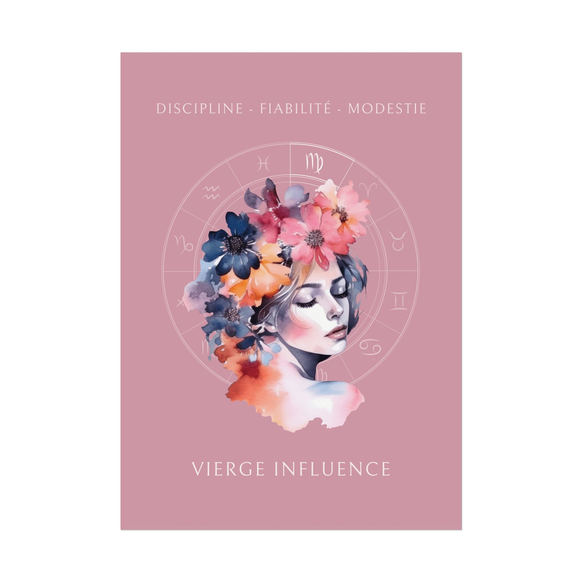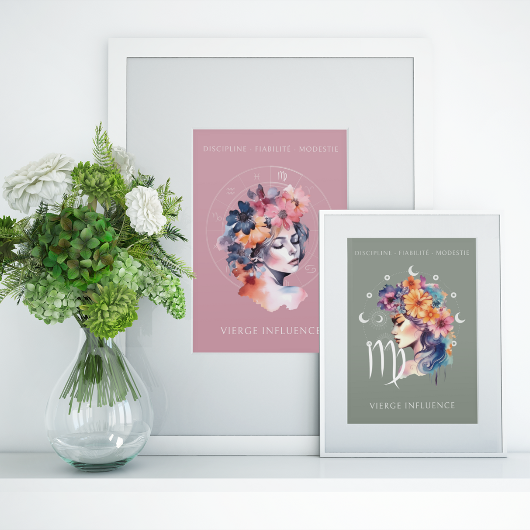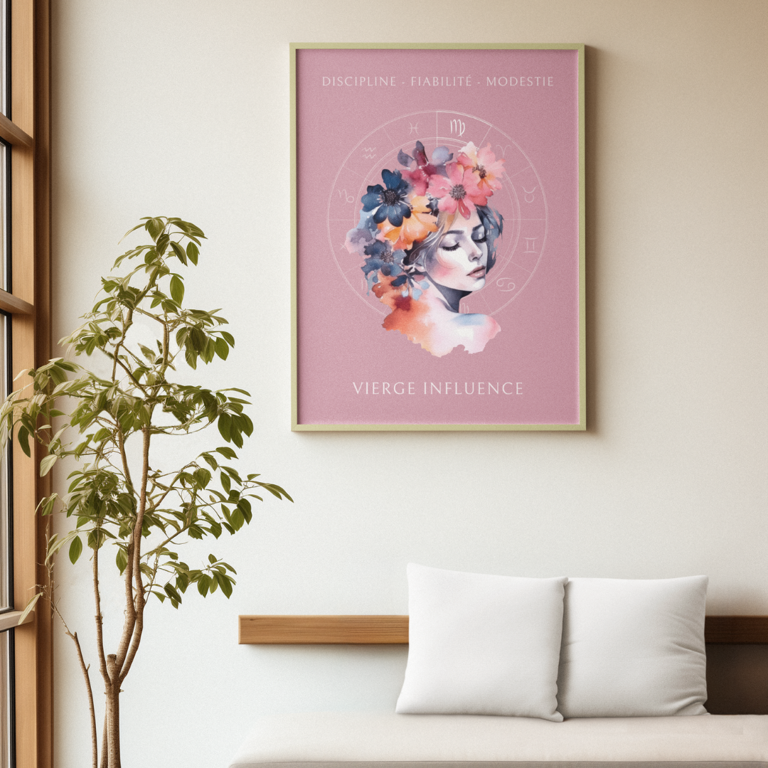 Exprimez la rigueur et la douceur du signe de la Vierge avec ce magnifique poster, conçu pour les femmes nées sous ce signe de terre. L’illustration de Christine, entourée de fleurs, capte l’essence de la Vierge tout en mettant en avant ses qualités uniques : discipline, fiabilité et modestie.