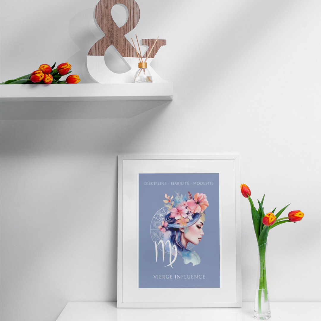 Exprimez la rigueur et la douceur du signe de la Vierge avec ce magnifique poster, conçu pour les femmes nées sous ce signe de terre. L’illustration de Jasmine, entourée de fleurs, capte l’essence de la Vierge tout en mettant en avant ses qualités uniques : discipline, fiabilité et modestie.