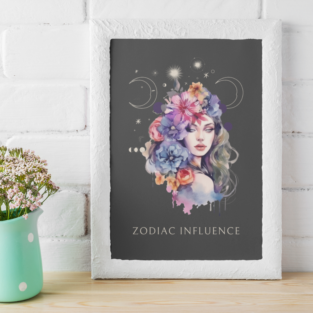 Plongez dans un univers spirituel avec ce magnifique poster d'Eleonore, enveloppée de fleurs et d'une aura astrologique. Cette illustration, inspirée de la spiritualité, capture l'essence de la beauté intérieure en intégrant des symboles astraux qui évoquent harmonie et profondeur.