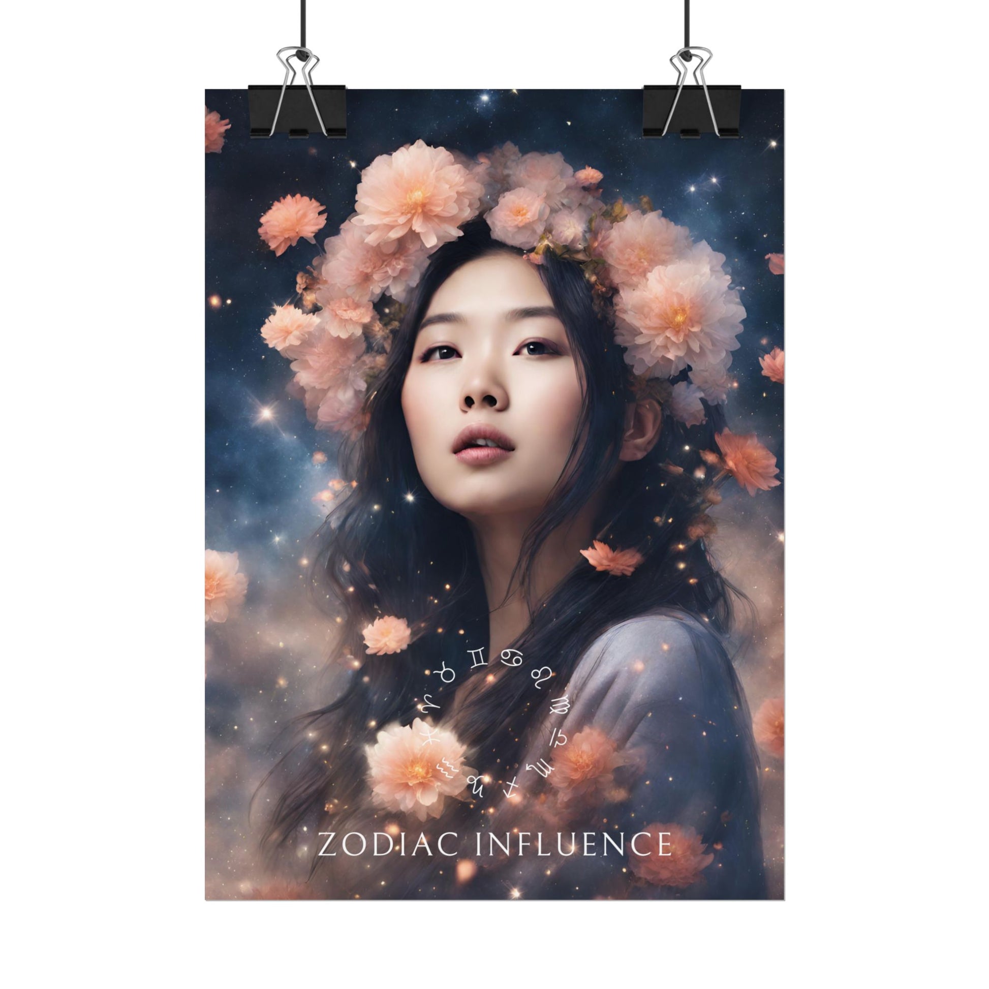 Apportez une touche mystique et féminine à votre intérieur avec ce poster inspiré de l'univers astrologique. Entourée de fleurs sous un ciel étoilé, Meiying incarne l'essence même de l’astrologie, une alliance subtile de sagesse et d’influence céleste.