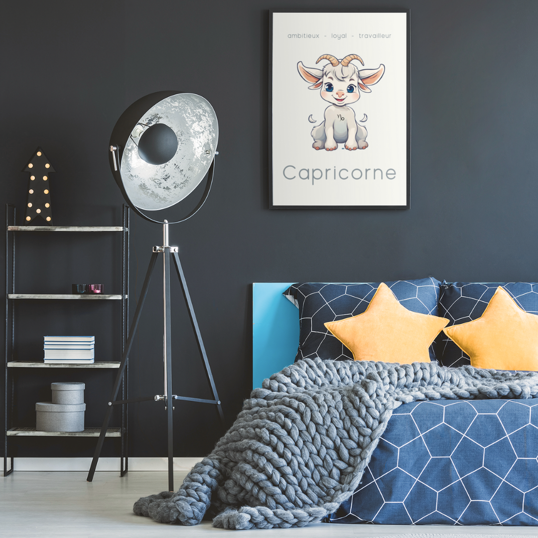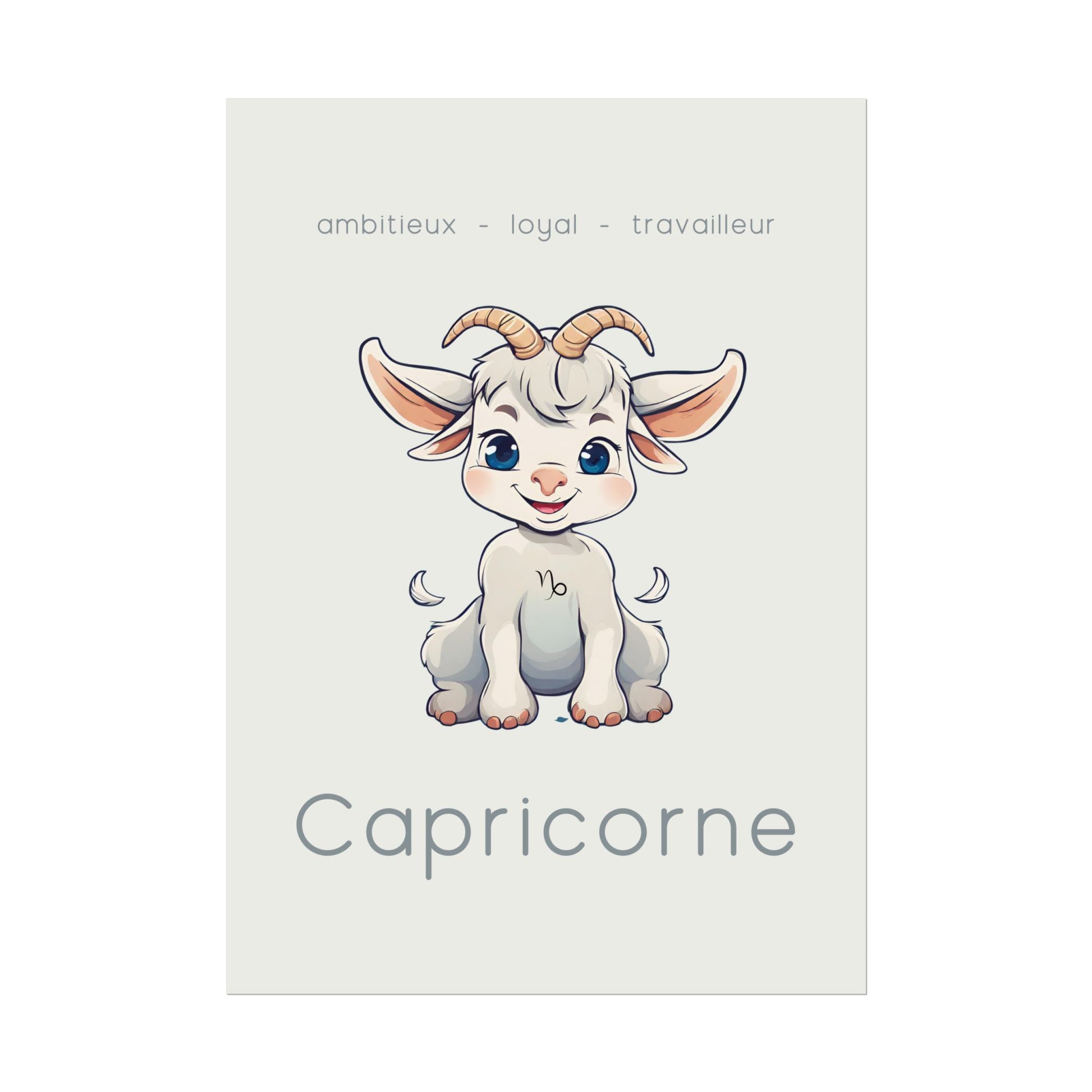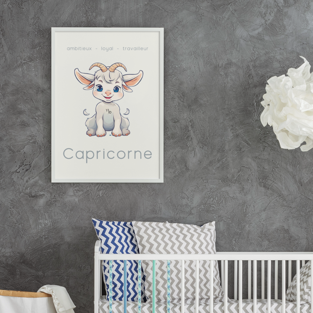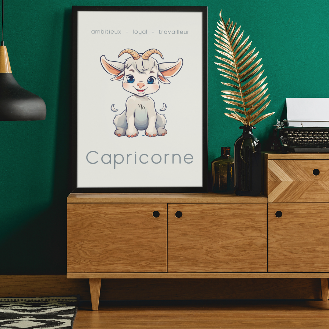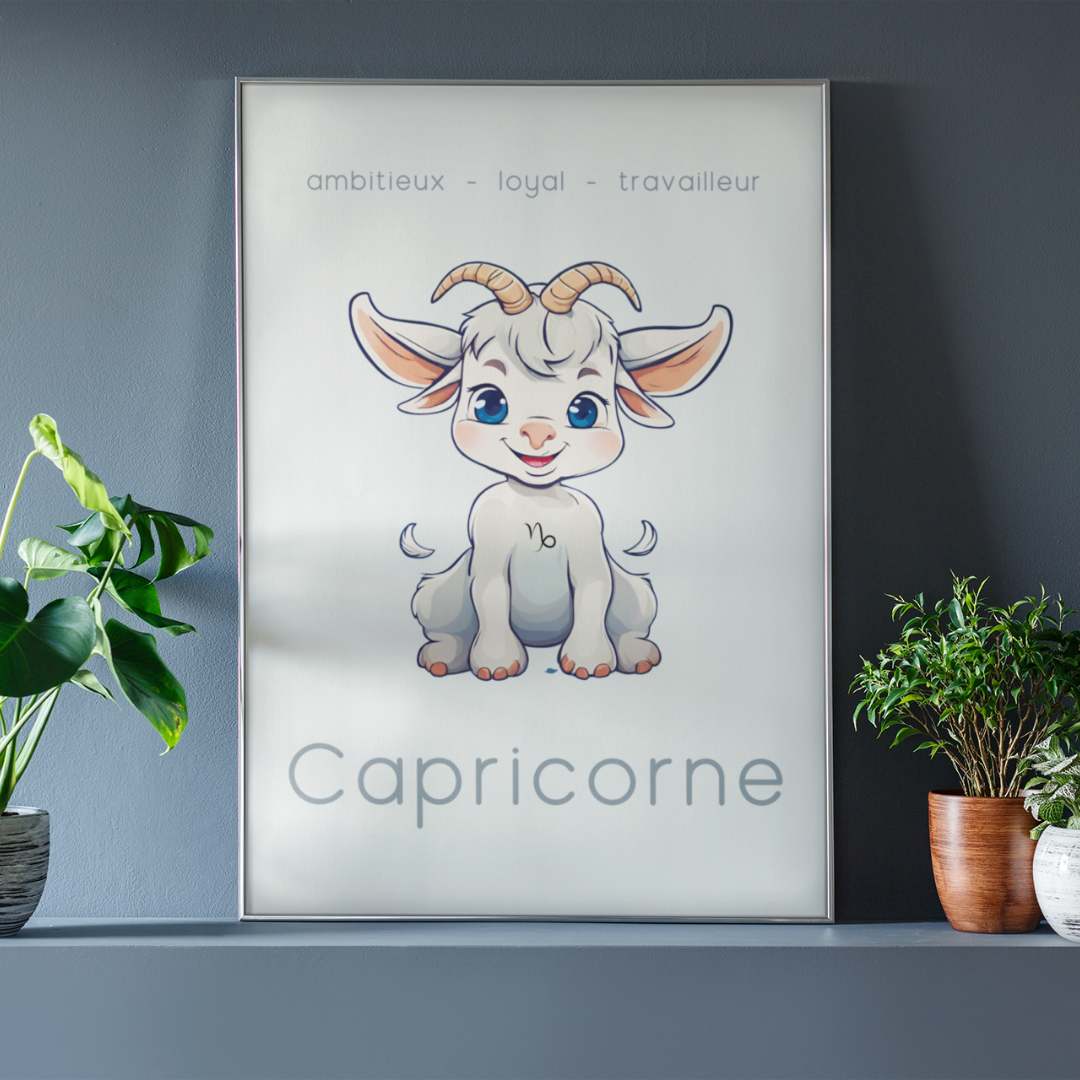 joutez une touche de détermination et de sagesse à votre décoration avec ce poster spécialement conçu pour les petits garçons ou les hommes gardant une âme d’enfant, nés sous le signe du Capricorne. L’illustration enfantine reflète leur ambition, leur loyauté et leur nature travailleuse.