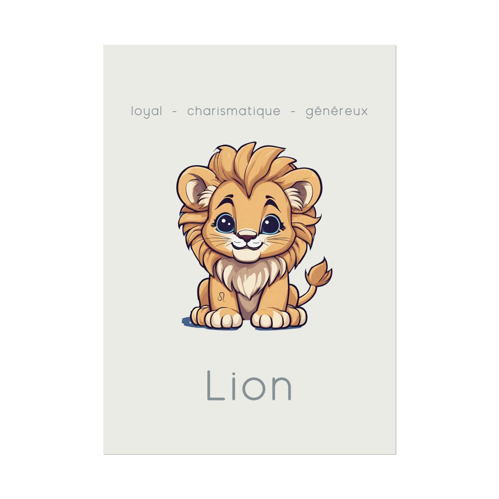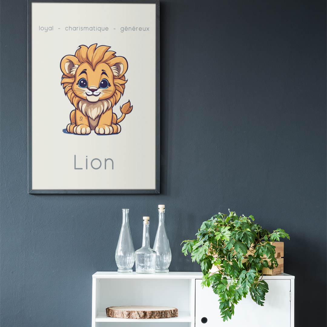 Ajoutez une touche de chaleur et de grandeur à votre intérieur avec ce poster conçu pour les petits garçons ou les hommes ayant gardé une âme d’enfant, nés sous le signe du Lion. Cette illustration enfantine, mise en valeur par un fond beige reflète leur loyauté, leur charisme et leur générosité.