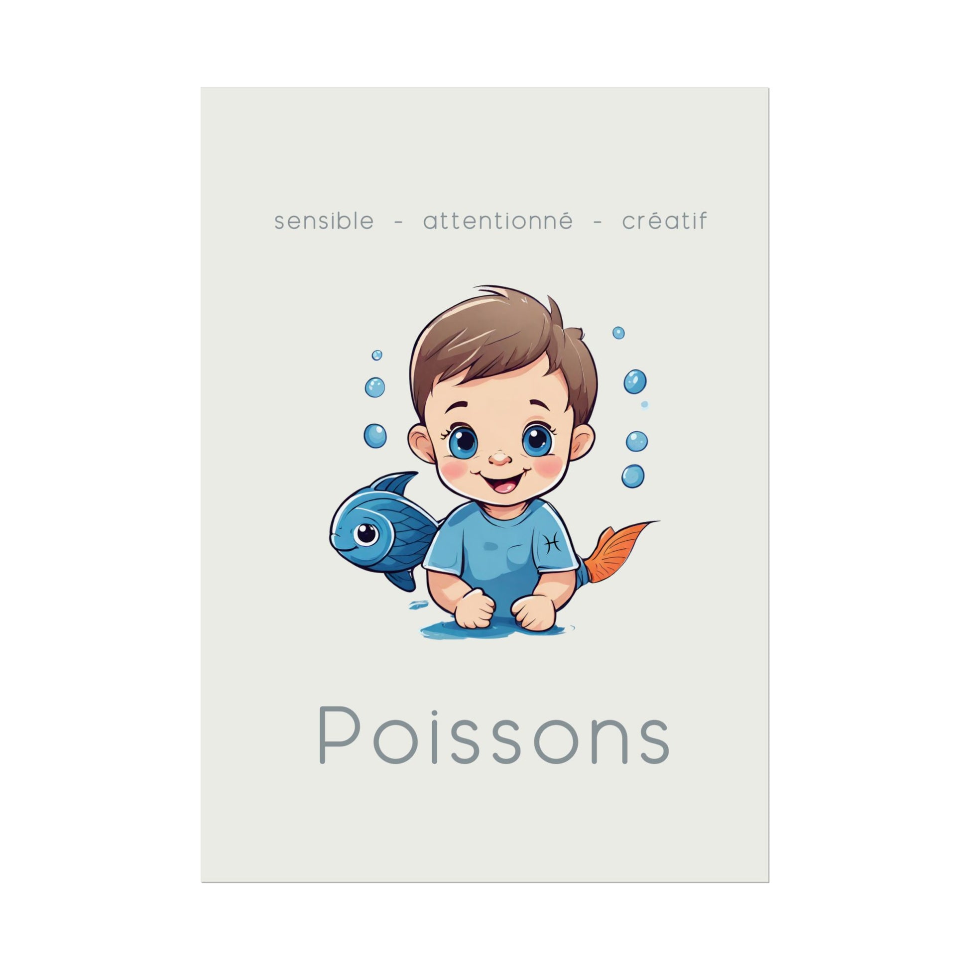 Apportez une touche de douceur et de sensibilité à votre intérieur avec ce poster conçu spécialement pour les petits garçons ou les hommes ayant conservé une âme d’enfant, nés sous le signe des Poissons. L’illustration enfantine incarne leur sensibilité, leur créativité et leur grande capacité d’empathie.