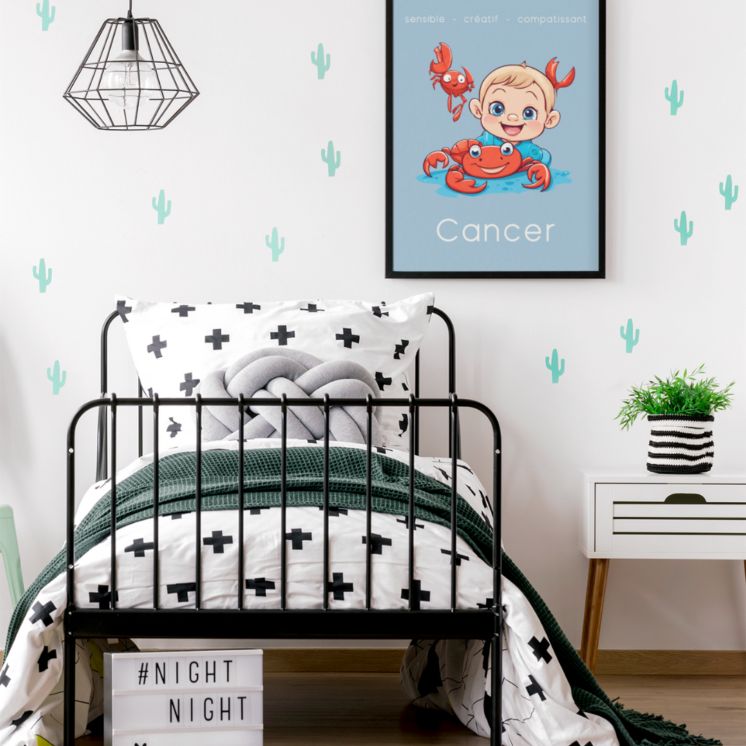 • Décoration astrologique touchante : Un cadeau idéal pour les petits Cancer, célébrant leur sensibilité et leur imagination.