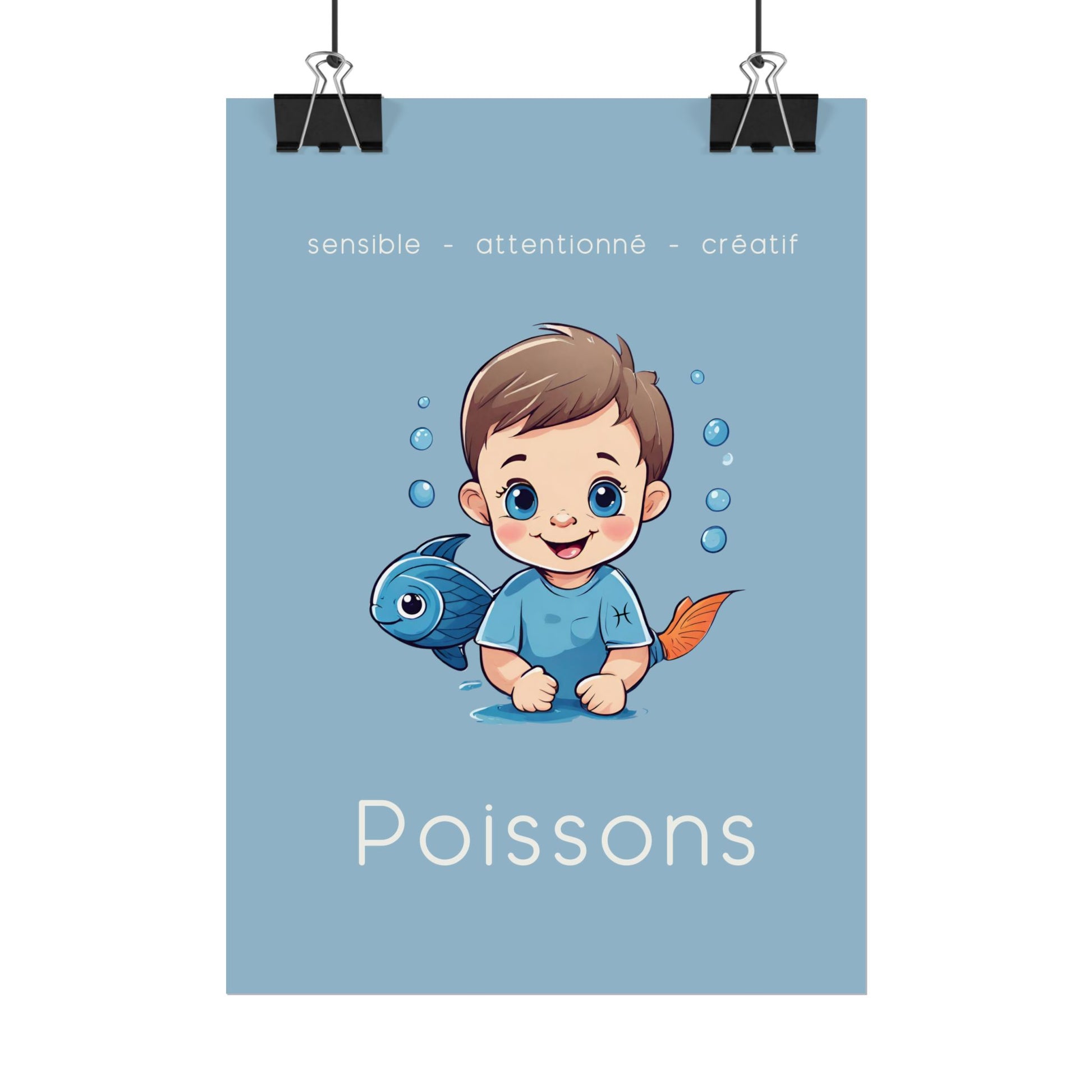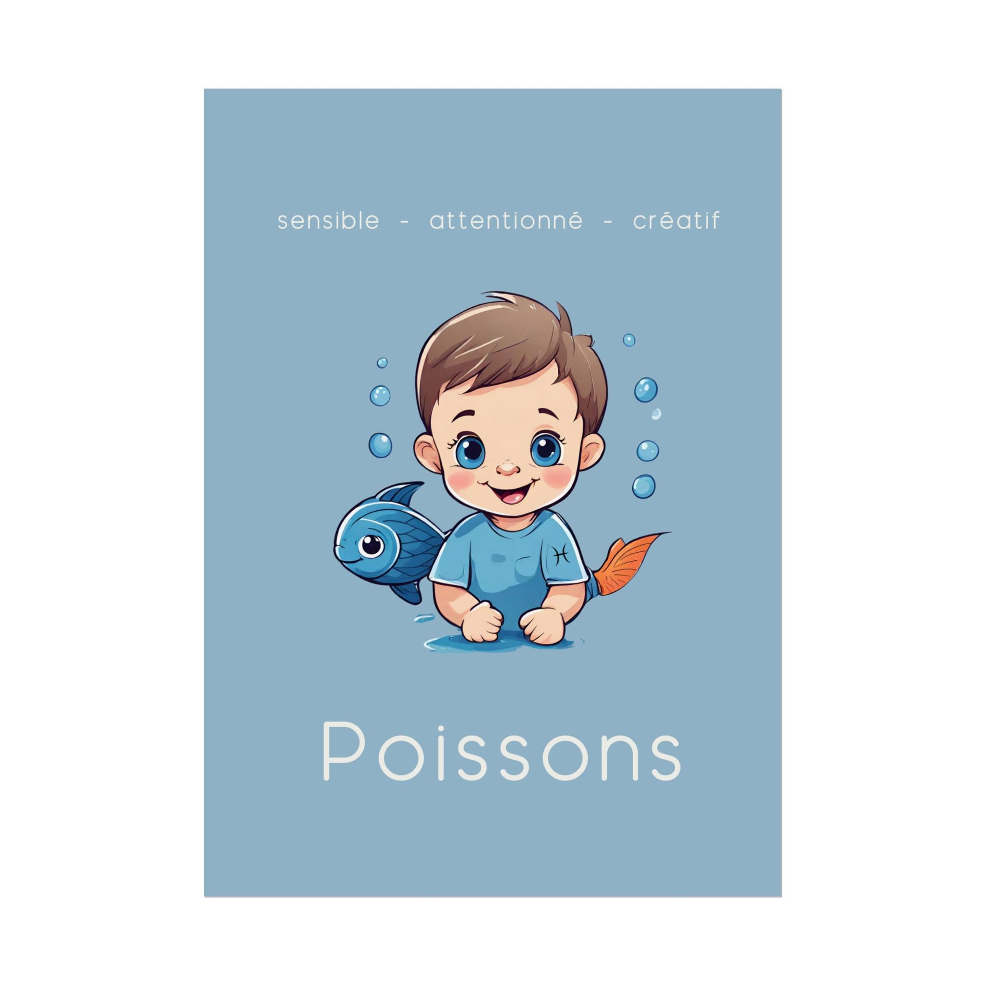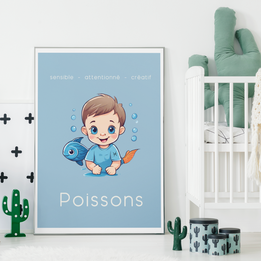 Apportez une touche de douceur et de sensibilité à votre intérieur avec ce poster conçu spécialement pour les petits garçons ou les hommes ayant conservé une âme d’enfant, nés sous le signe des Poissons. L’illustration enfantine incarne leur sensibilité, leur créativité et leur grande capacité d’empathie.