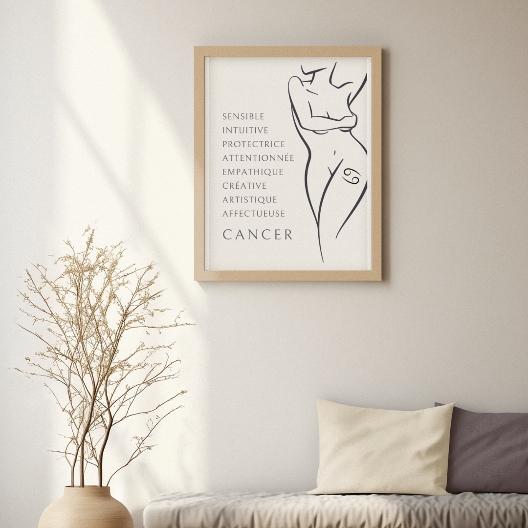 Commandez dès aujourd'hui et laissez cette œuvre vous rappeler la beauté de la féminité et de l’astrologie du Cancer dans votre espace.