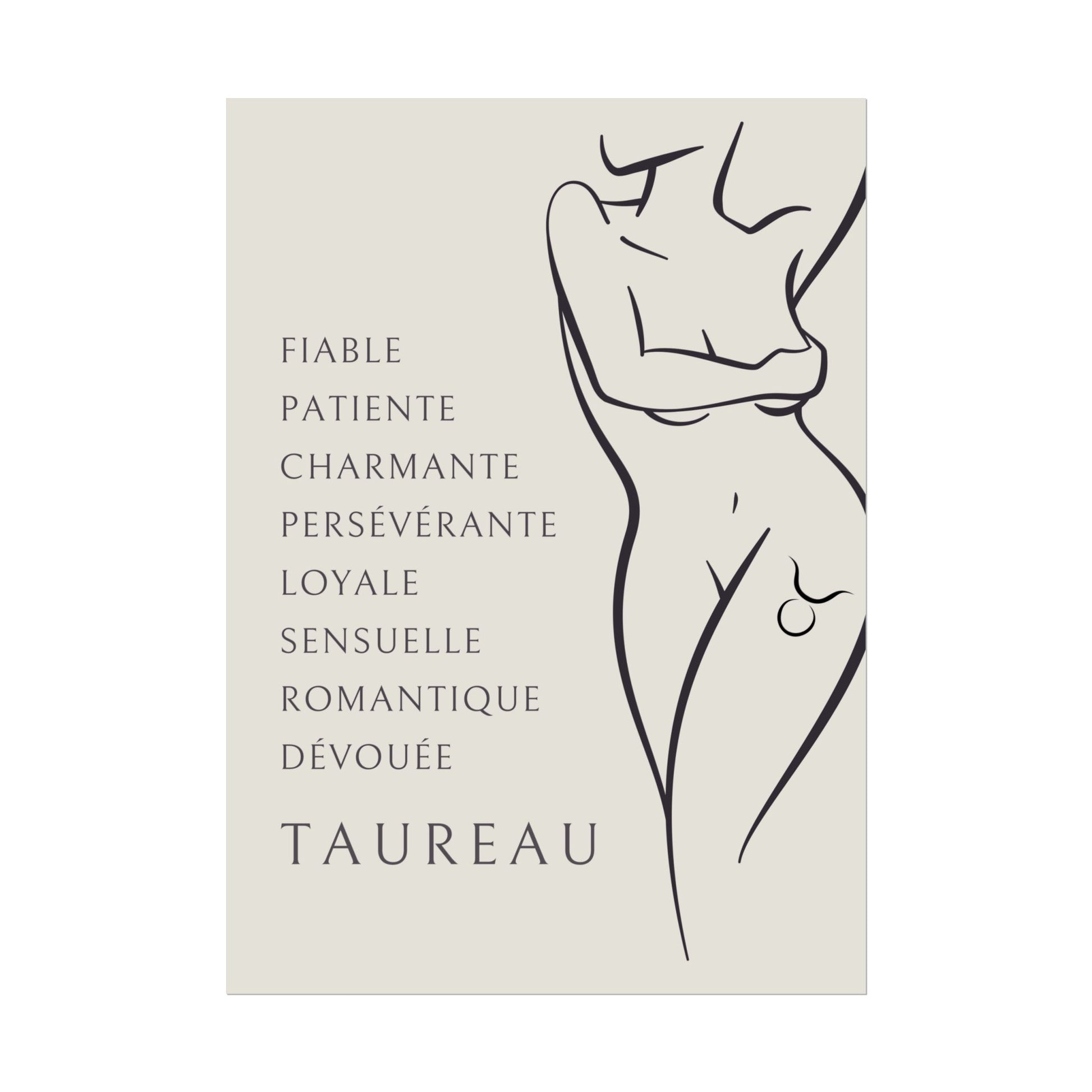• Design exclusif : Une illustration élégante qui célèbre la sensualité et la puissance du Taureau avec une touche artistique unique.