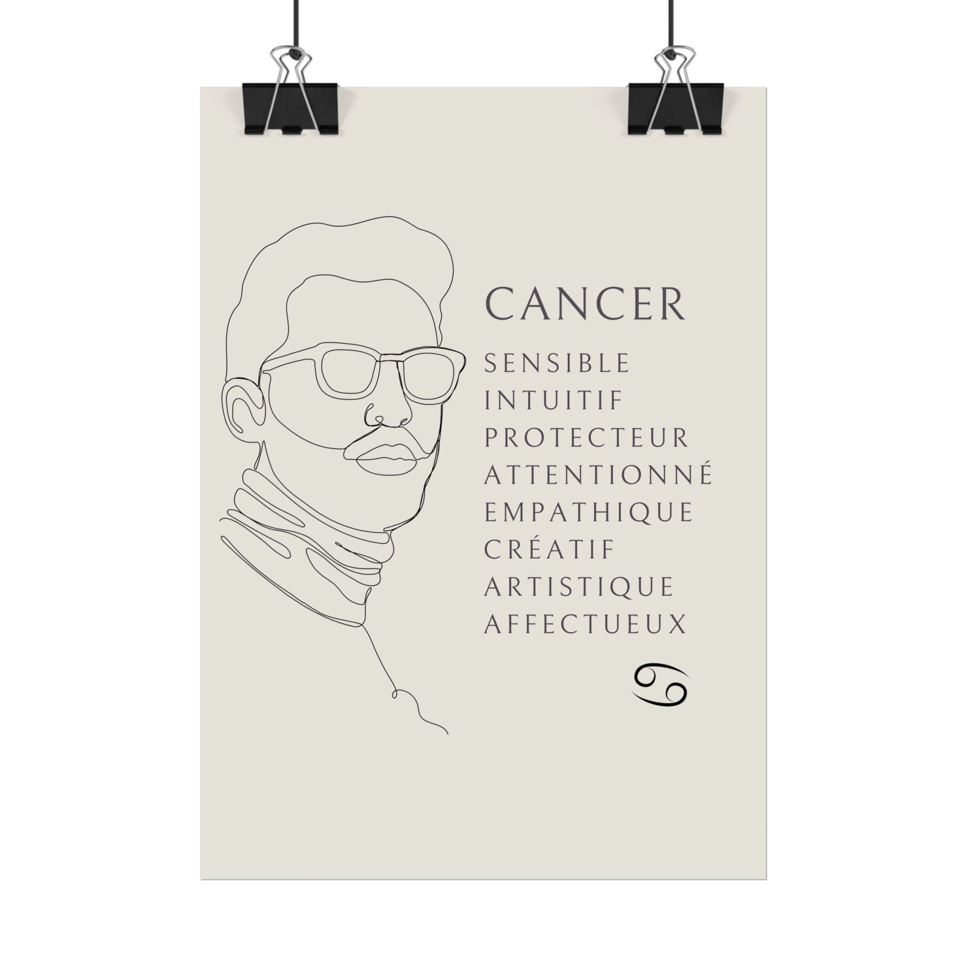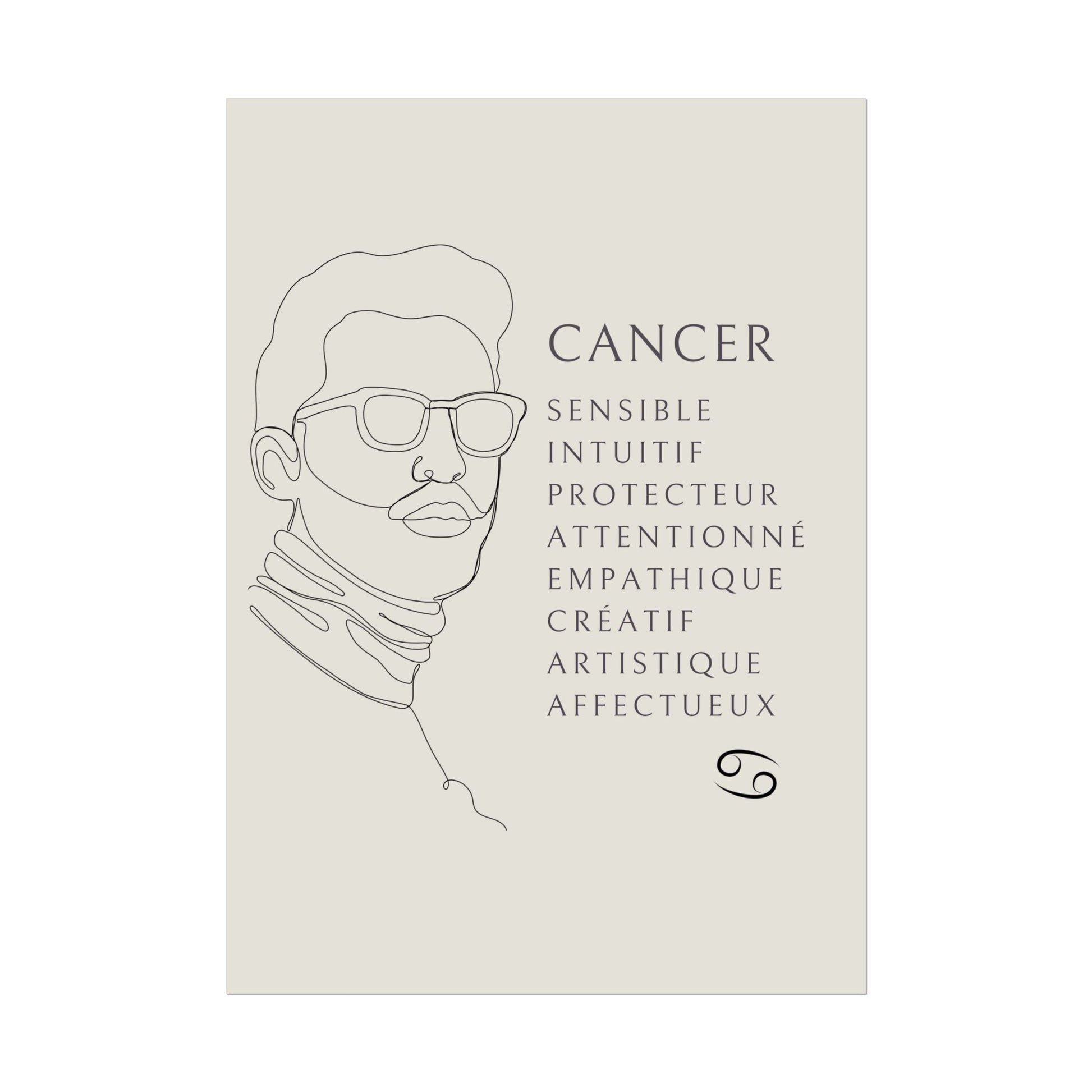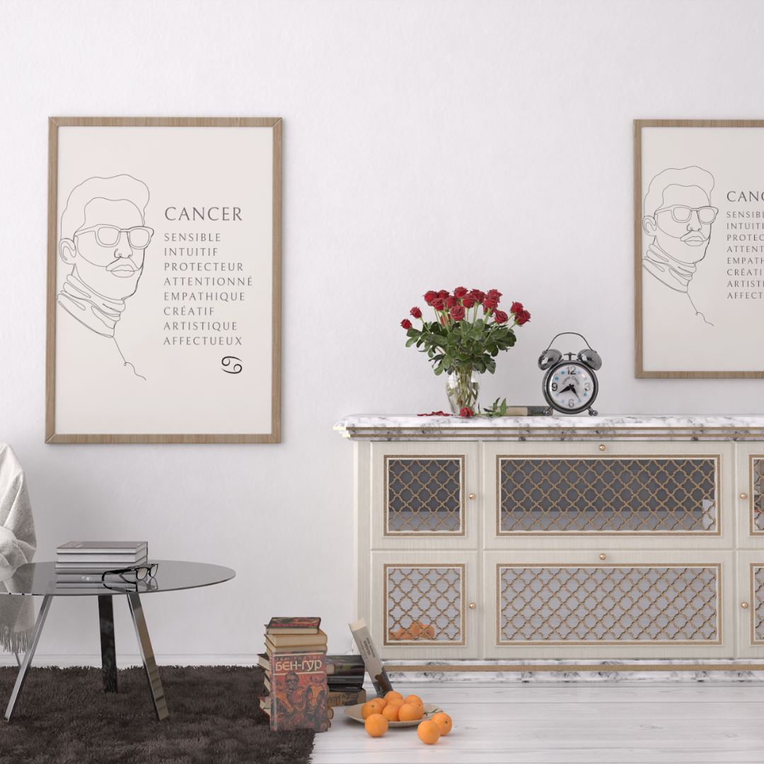 Apportez une touche d’intuition et de sensibilité à votre intérieur avec ce poster unique de la collection Zodiac Men. L’illustration met en lumière un homme élégant, incarnant l’essence protectrice et émotionnelle du signe du Cancer. Ce design est une ode à la douceur et à la force intérieure qui définissent ce signe d’eau.