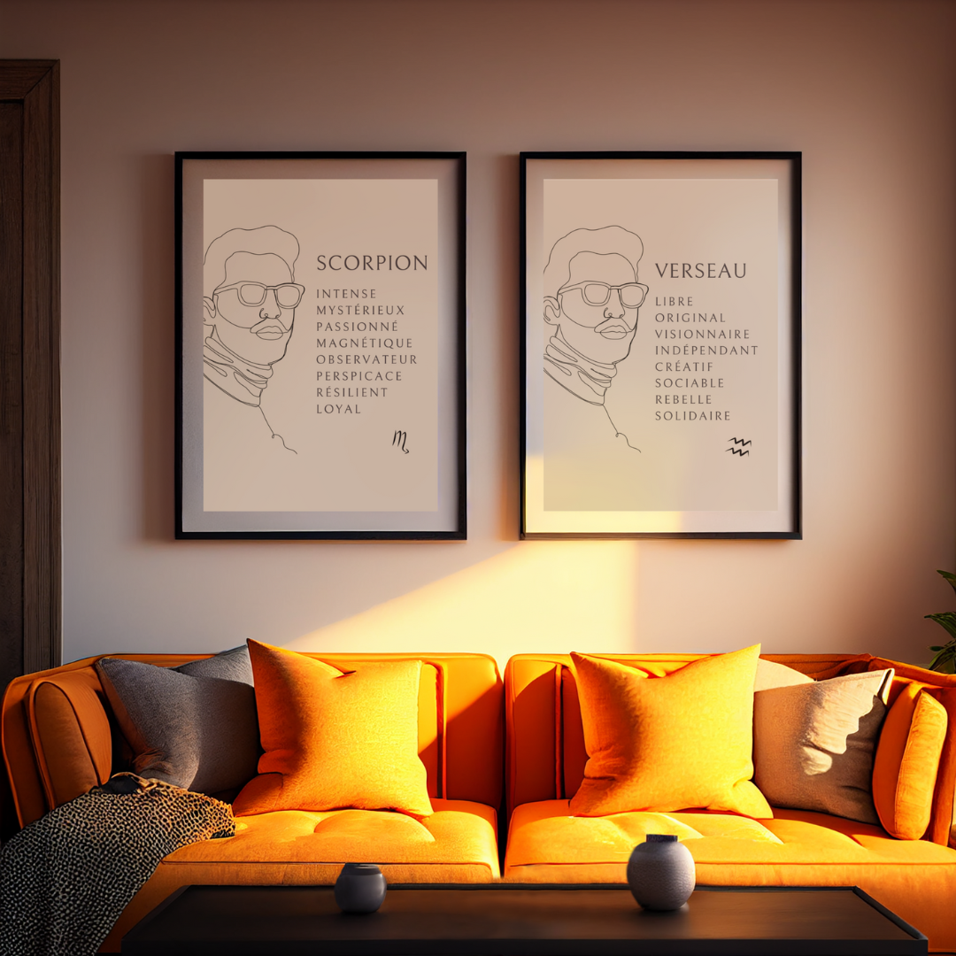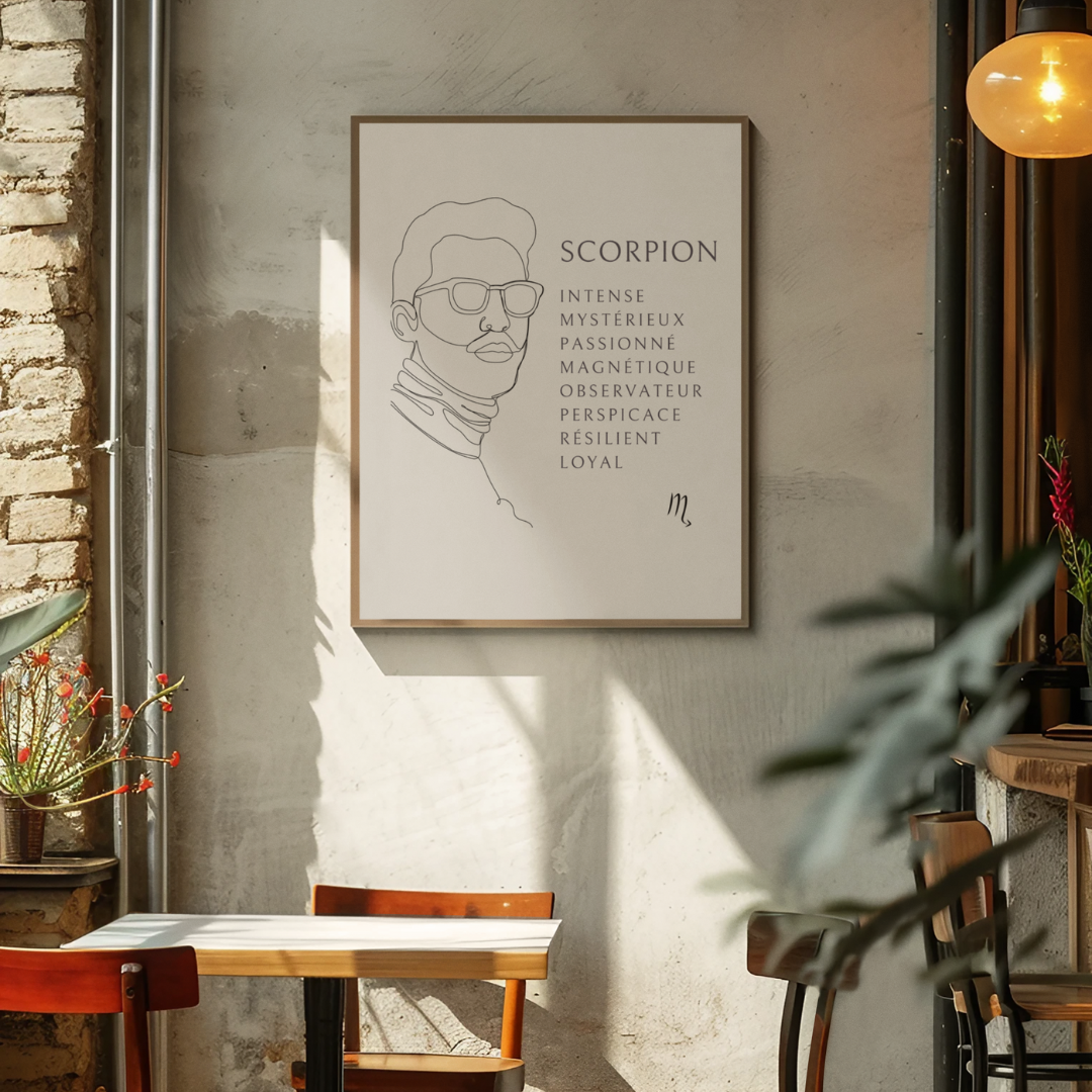 Apportez une touche d’intensité et de mystère à votre intérieur avec ce poster de la collection Zodiac Men. L’illustration met en avant un homme incarnant la profondeur et la passion propres au Scorpion, un signe empreint de force et d’énigmes.