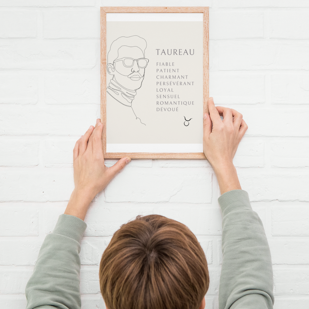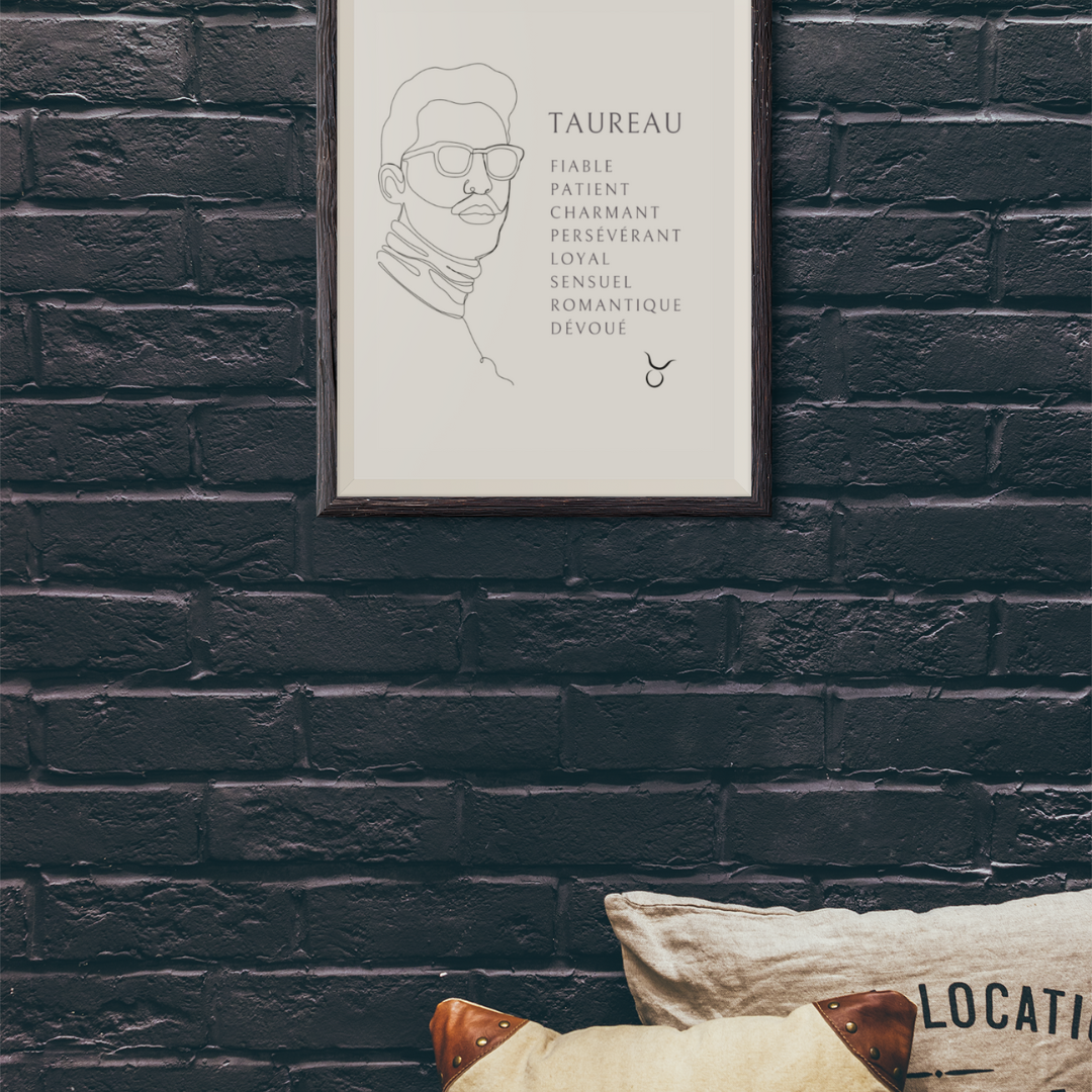 Affichez votre détermination et votre stabilité avec ce poster unique de la collection Zodiac Men. L’illustration représente un homme élégant, incarnant la force tranquille et la persévérance du Taureau. Ce design inspirant est conçu pour vous rappeler chaque jour vos qualités uniques.