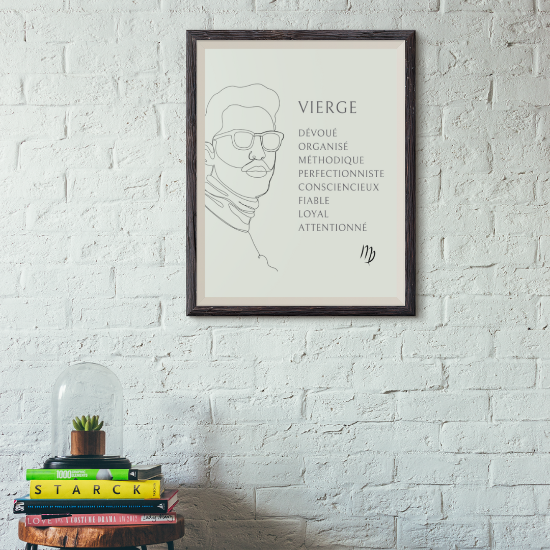 Ajoutez une note d’élégance et de discipline à votre intérieur avec ce poster de la collection Zodiac Men. L’illustration représente un homme incarnant la précision et la fiabilité du signe de la Vierge, un symbole intemporel de modestie et de perfection.