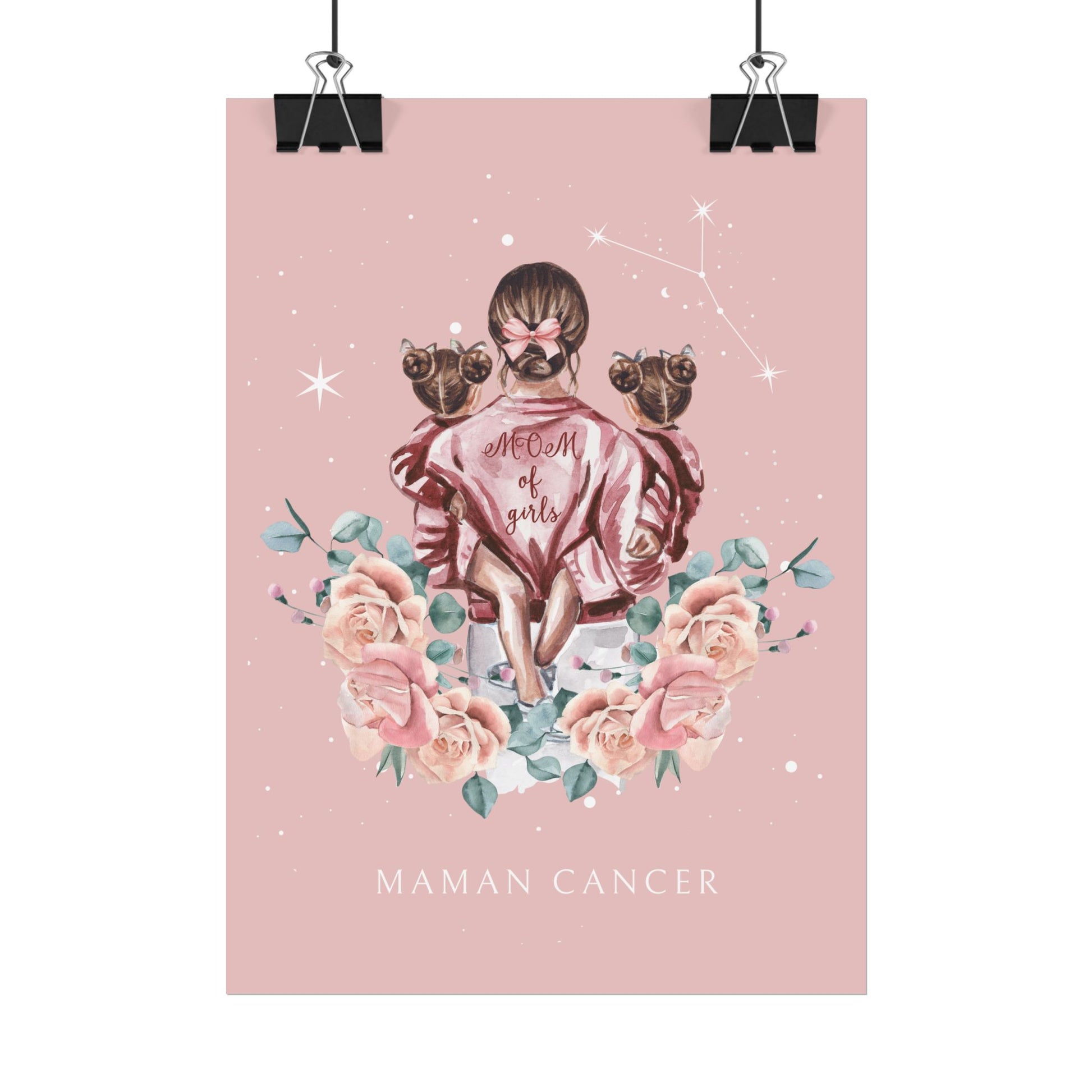 Ajoutez une touche d’émotion et de poésie à votre décoration avec ce poster de la collection Cosmic Mum. L’illustration met en scène une mère portant tendrement ses filles, enveloppés sous un ciel étoilé où brille la constellation du Cancer. Cette œuvre célèbre la douceur et la profondeur du lien maternel.