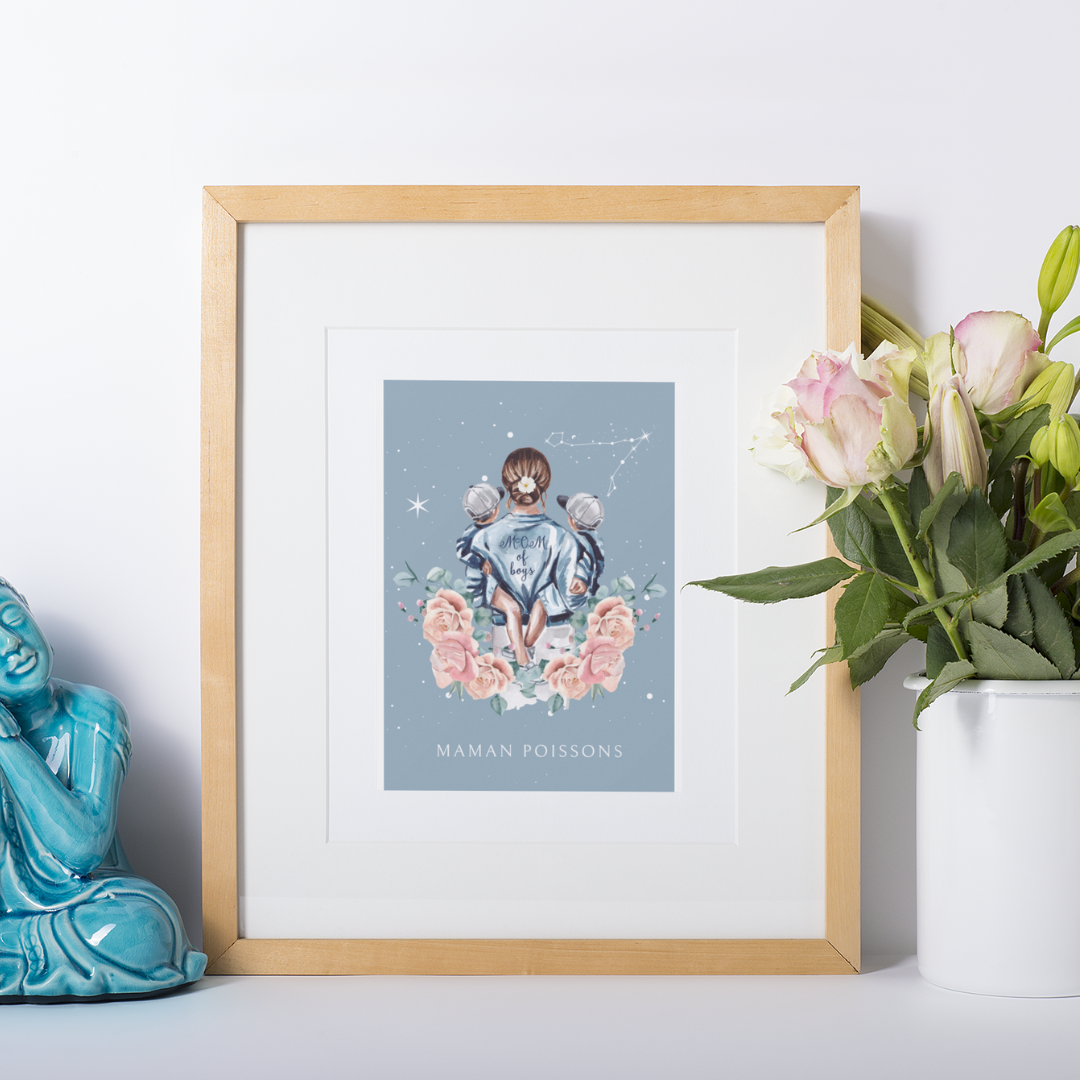 Offrez-vous ce poster ou offrez-le à une maman Poissons pour célébrer la beauté unique de sa maternité et de son amour. Un cadeau inoubliable pour toute maman empreinte de douceur et de compassion.