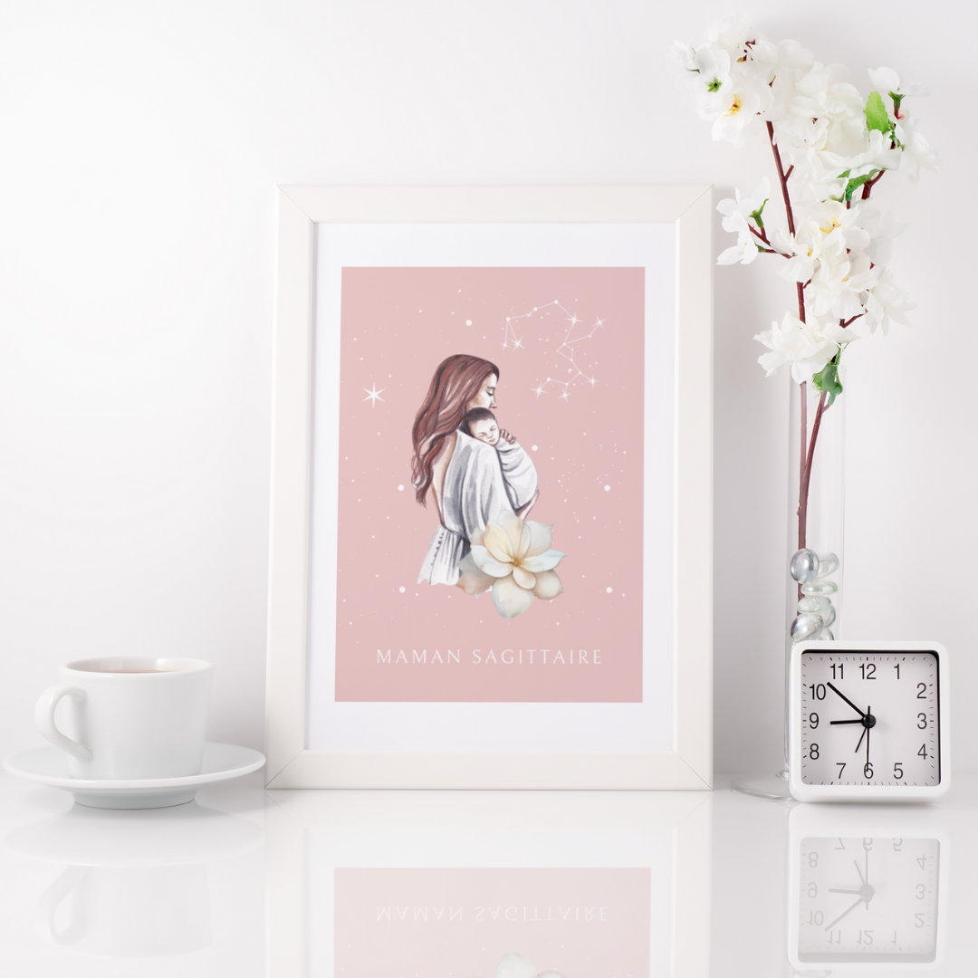 • Design exclusif : Une illustration vibrante qui célèbre la maternité et l’esprit aventureux du Sagittaire.